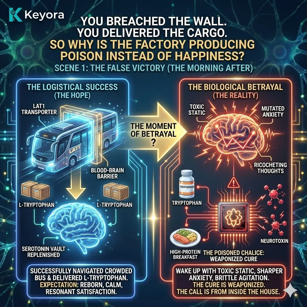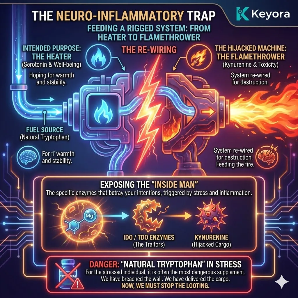 So, when you ingest Tryptophan, the War Department (The Immune System and the Liver) seizes it immediately. They do not care that you want to sleep. They care that there is a perceived threat (Inflammation).