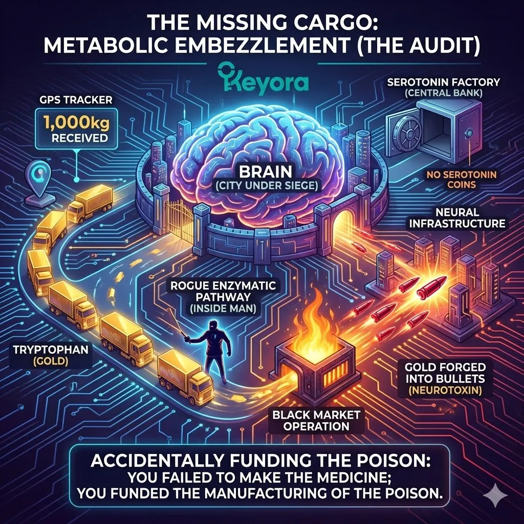 You were simply operating in a system where the inputs (Tryptophan) were being systematically diverted to the wrong outputs (Neurotoxins).