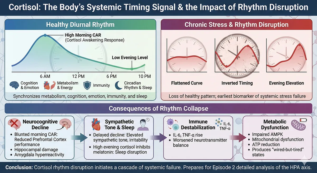 Together, these mechanisms show that cortisol rhythm disruption is not merely a biomarker; it is the earliest functional indicator of a collapsing neuro-endocrine homeostasis.