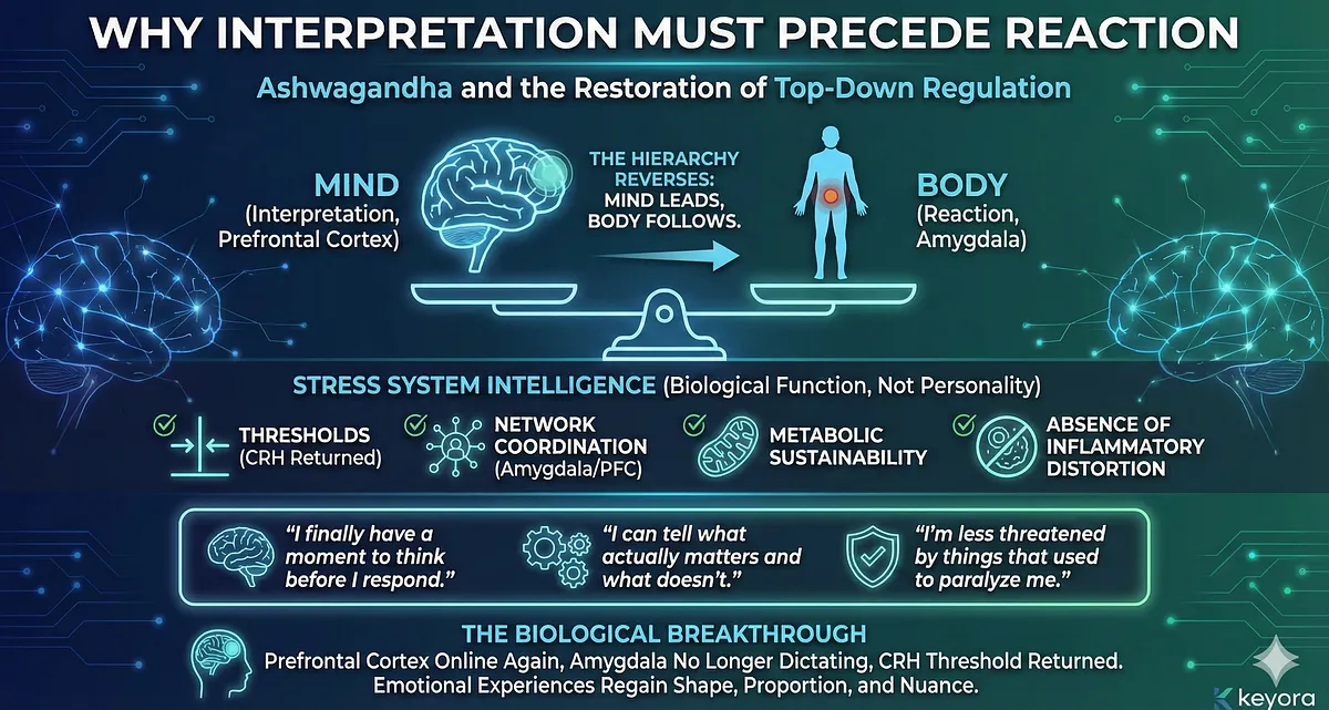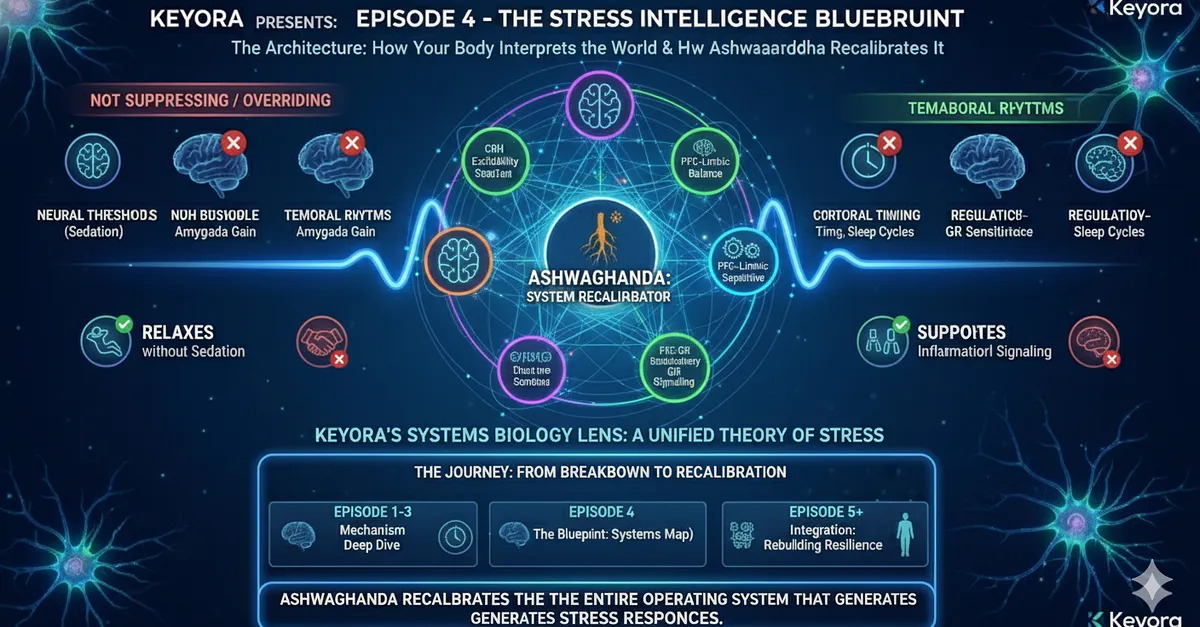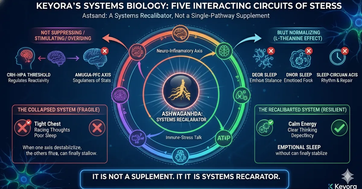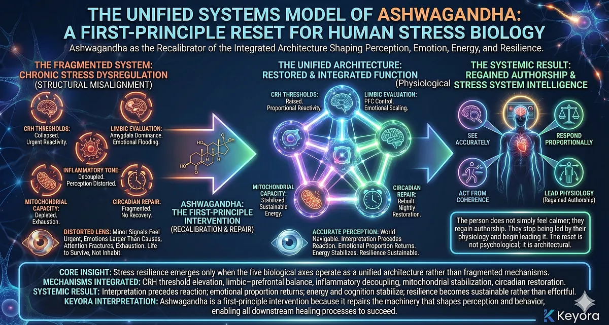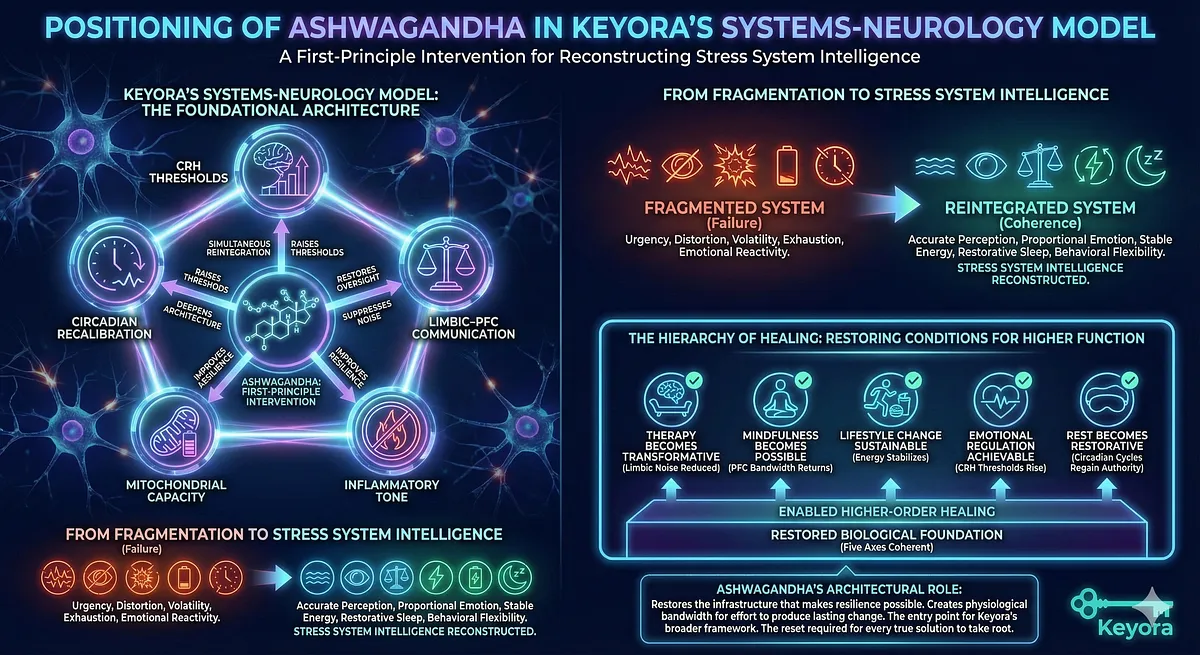 – Core Insight: Ashwagandha is not symptom relief; it is a first-principle reset within Keyora’s Systems-Neurology Model.