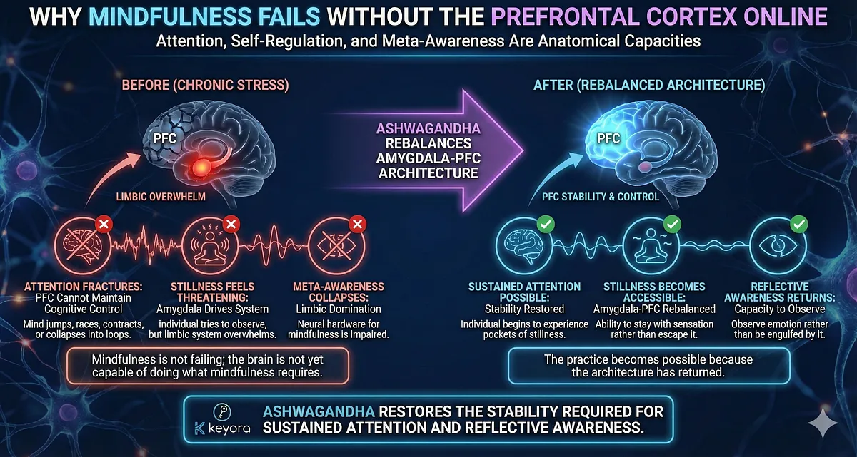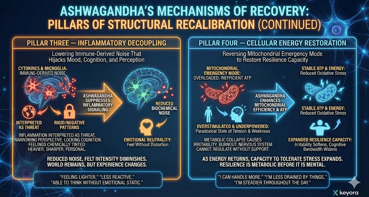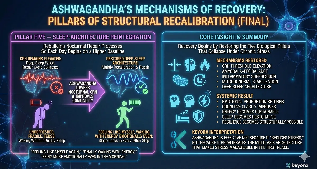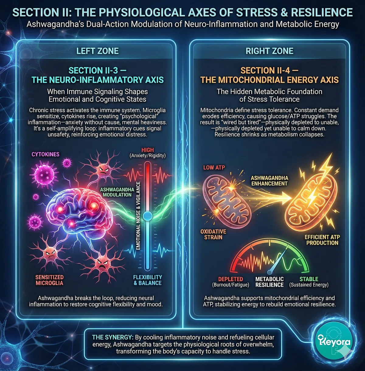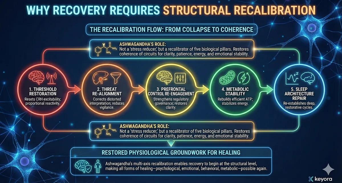 – Core Insight: Ashwagandha is not symptom relief; it is a first-principle reset within Keyora’s Systems-Neurology Model.
