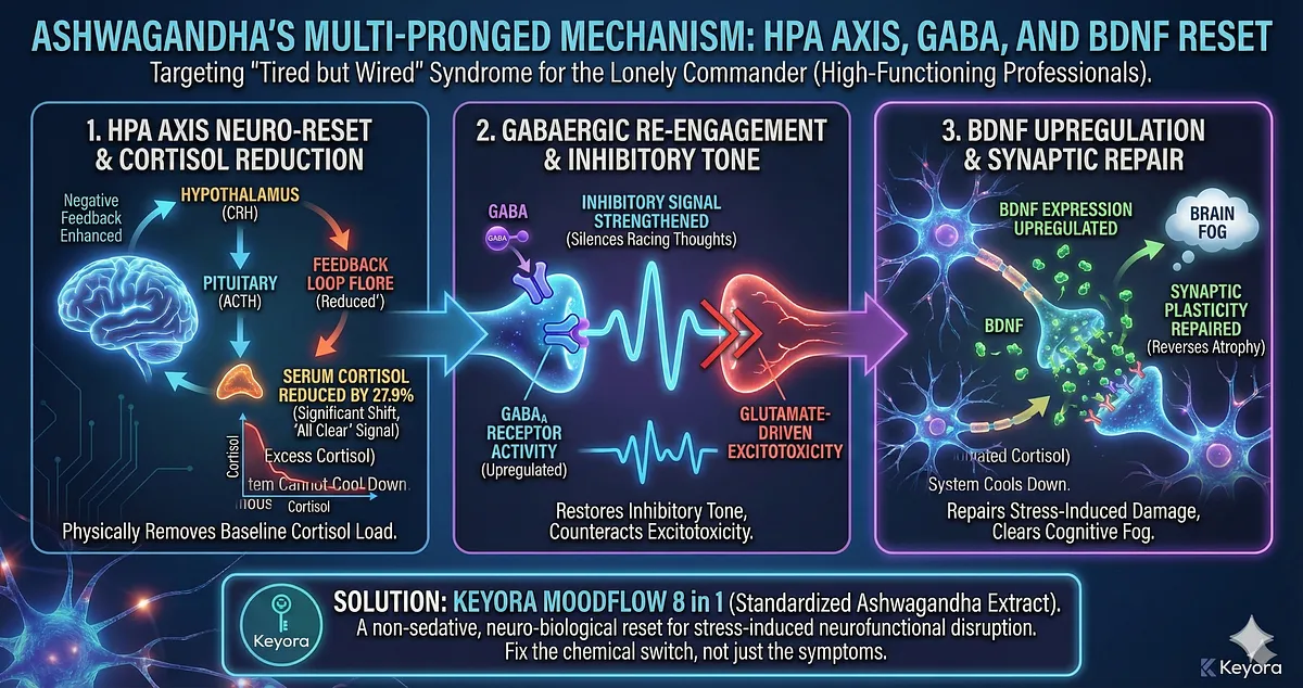 This is the precise neuro-functional role of Ashwagandha (Withania Somnifera) within the Keyora framework.