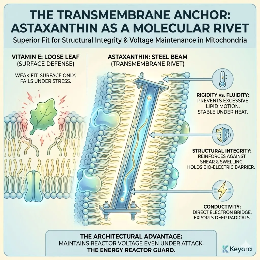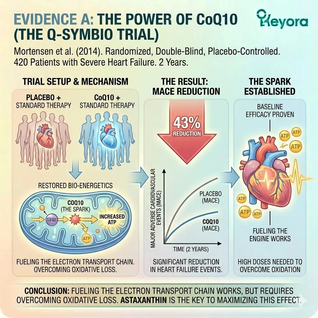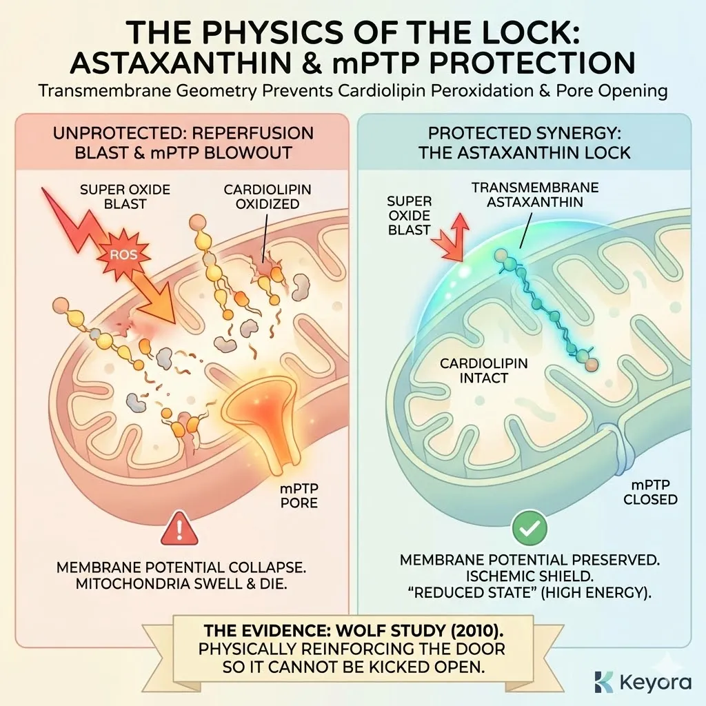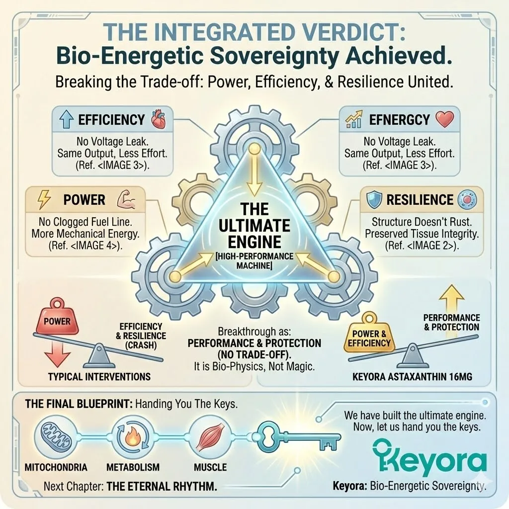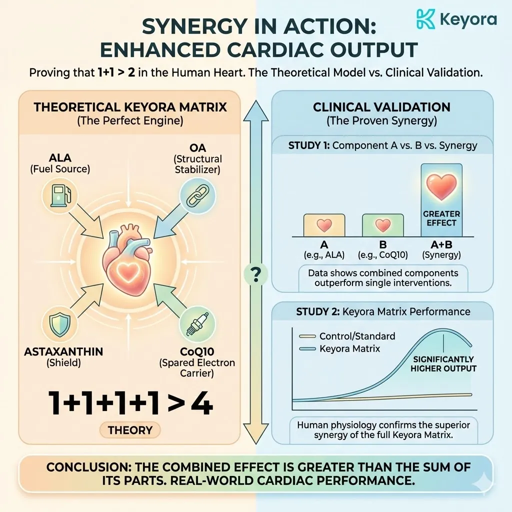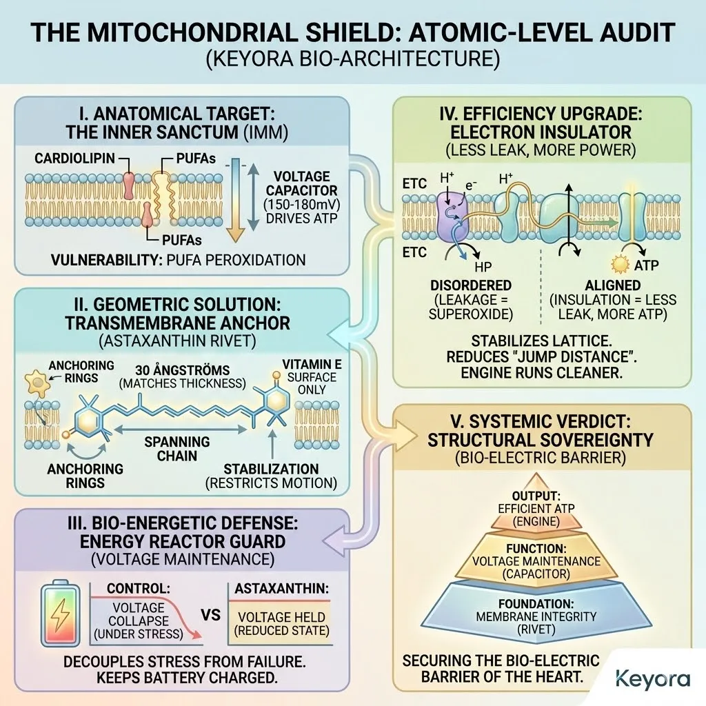 * **The Synergy:** Astaxanthin acts as **[The Electron Carrier Guard]**, sparing CoQ10 from antioxidant duties so it can focus on ATP synthesis.