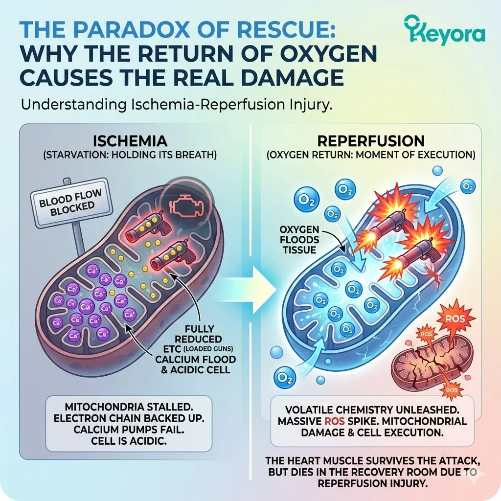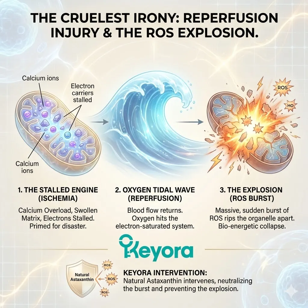 For a young, healthy heart, this tax is manageable. The body has endogenous antioxidant systems (SOD, Glutathione) that scrub the exhaust as fast as it is produced. The reactor runs clean.