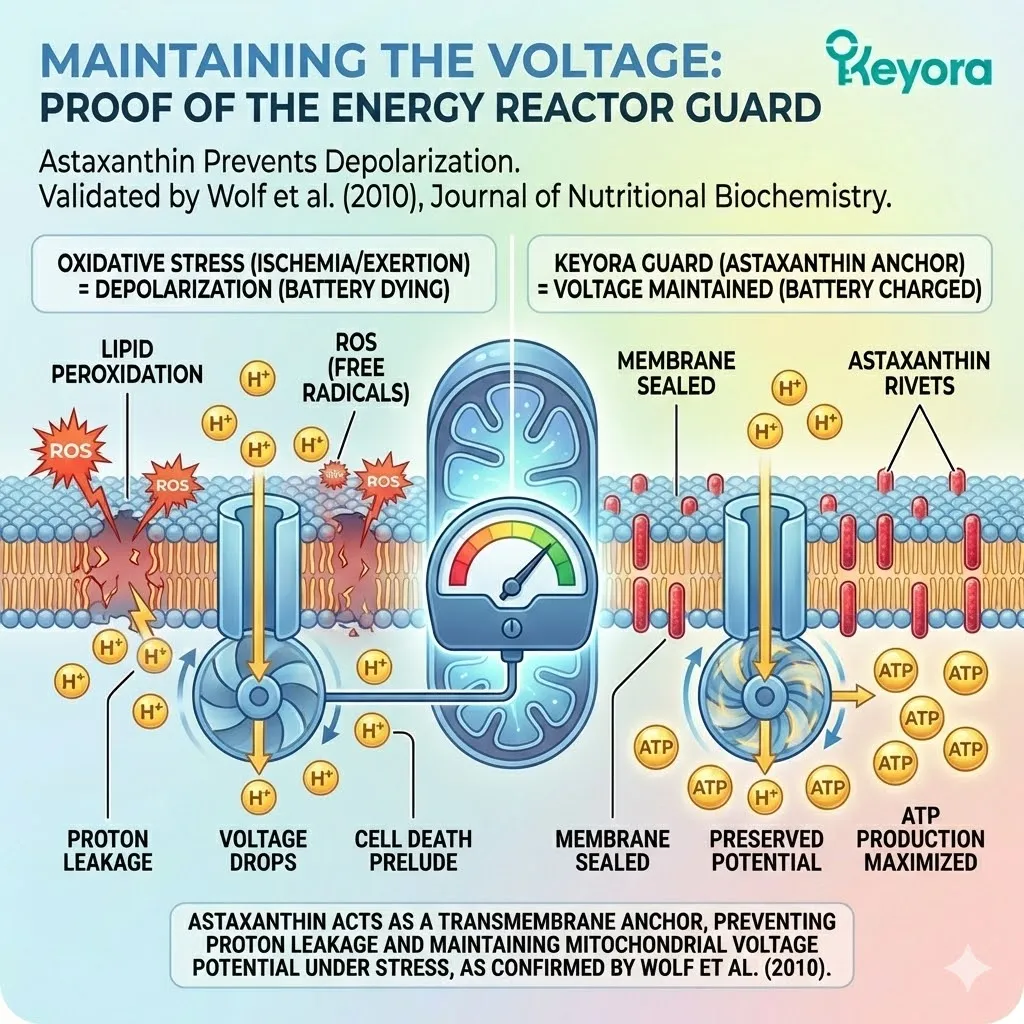 * **The Evidence (Wolf et al., 2010):** Maintained the **”Reduced State”** (High Charge) under oxidative assault, preventing bio-energetic collapse.