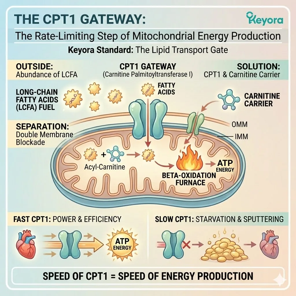 * **The Target:** **CPT1 Enzyme** (Carnitine Palmitoyltransferase I).