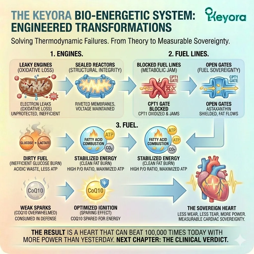 * **The Conclusion:** The Keyora Cardiac Architecture transforms the heart from a vulnerable pump into a self-repairing, high-output engine capable of infinite endurance.