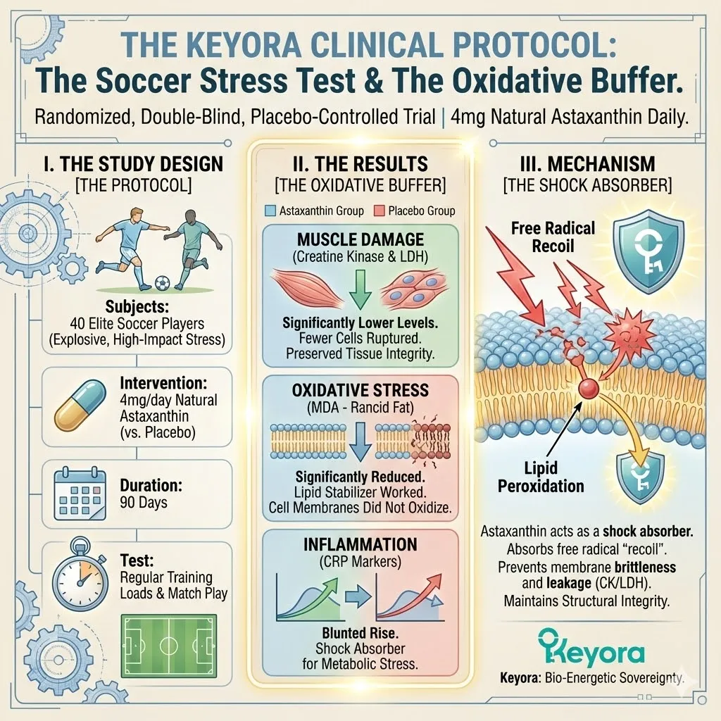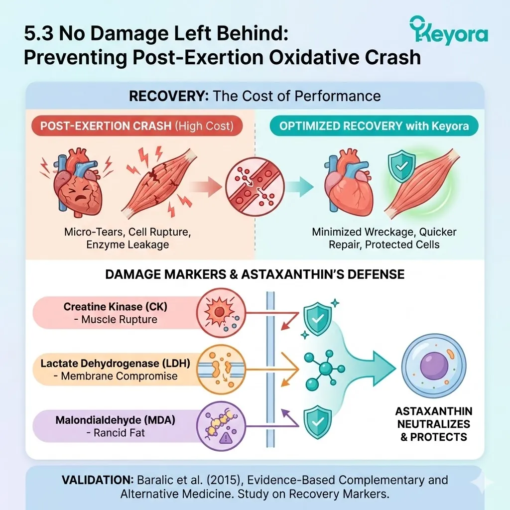 * **Data:** Significant reduction in **CK/LDH** (Muscle Damage) and **MDA** (Oxidation).