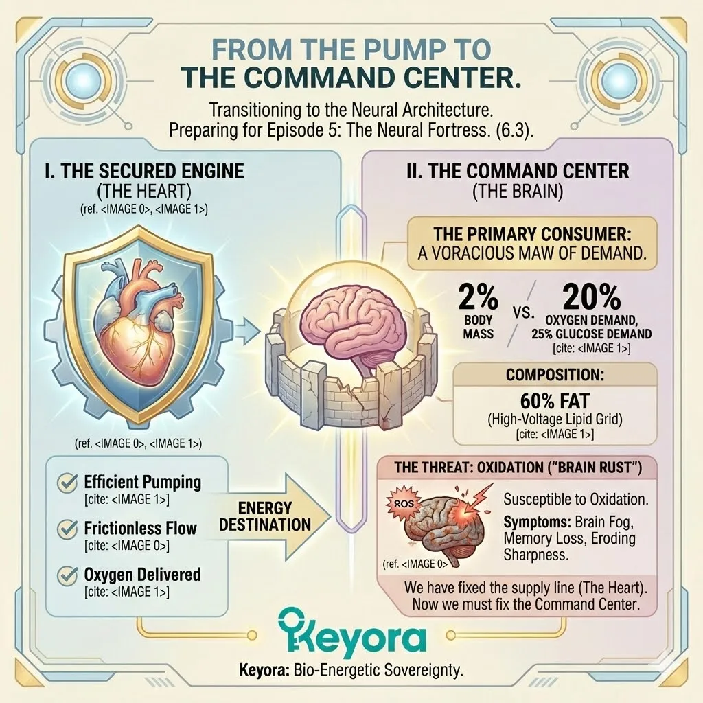 The heart does not beat for itself. It beats to serve the organism. And the primary consumer of that service – the organ that demands the highest priority on the supply chain – is the Brain.