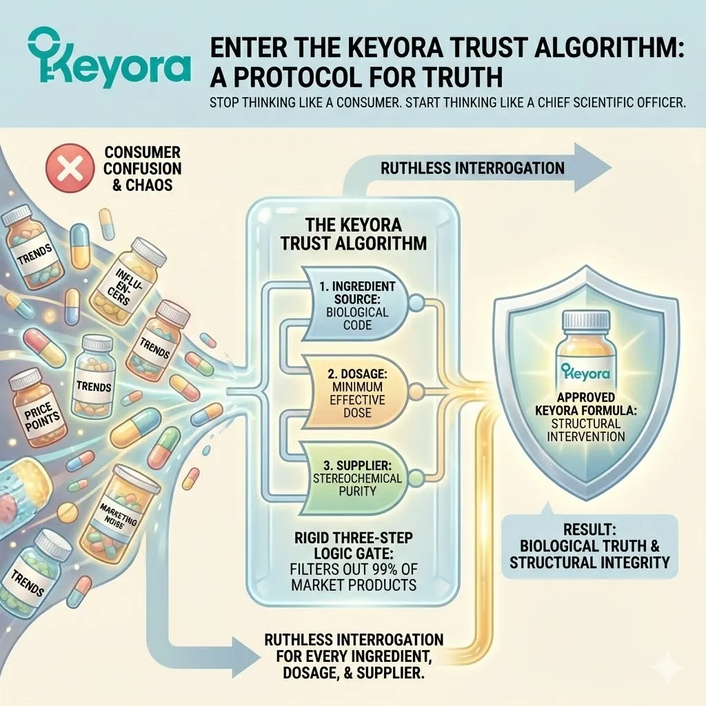 It is the internal operating system of our R&D department. It is the filter through which every ingredient, every dosage, and every supplier must pass before it is allowed into a Keyora formula.