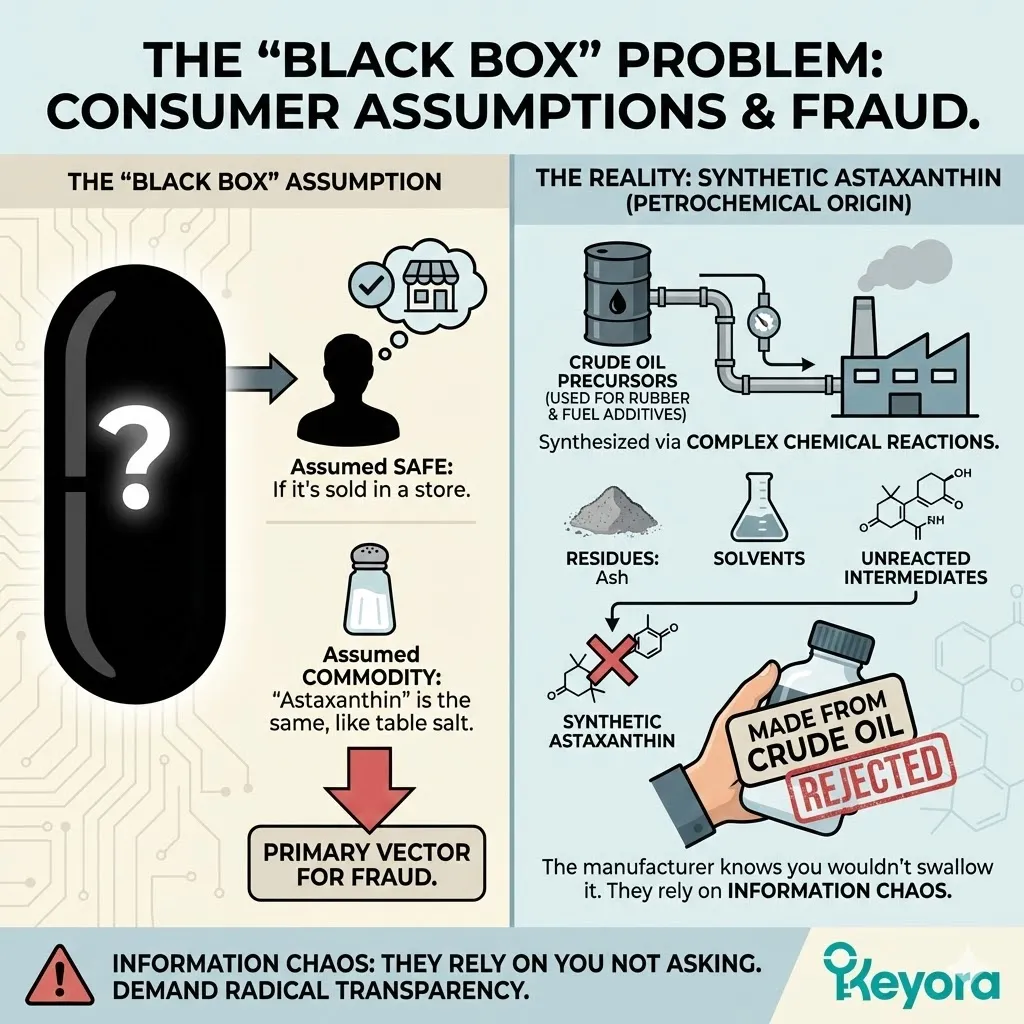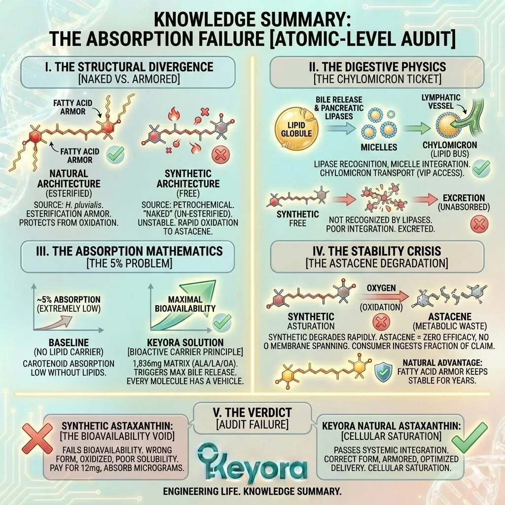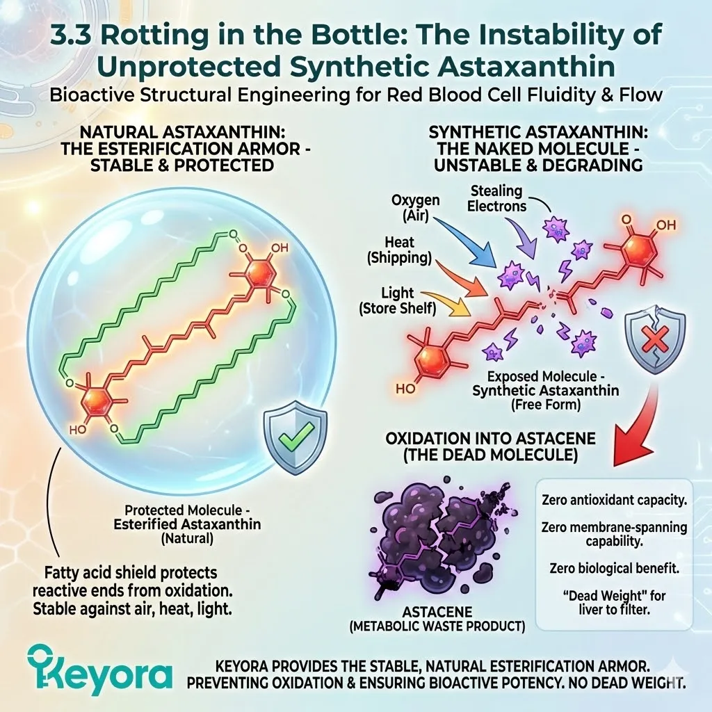 You would find Oxidized Oils – carrier lipids that have gone rancid on the shelf because the manufacturer didn’t understand the physics of stability, turning a potential antioxidant into a pro-oxidant grenade.