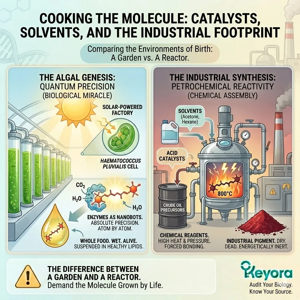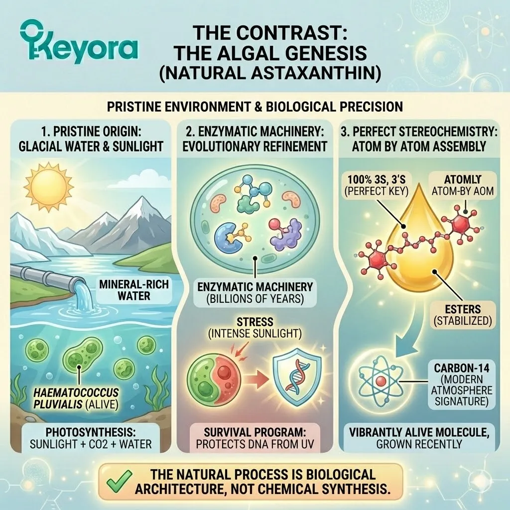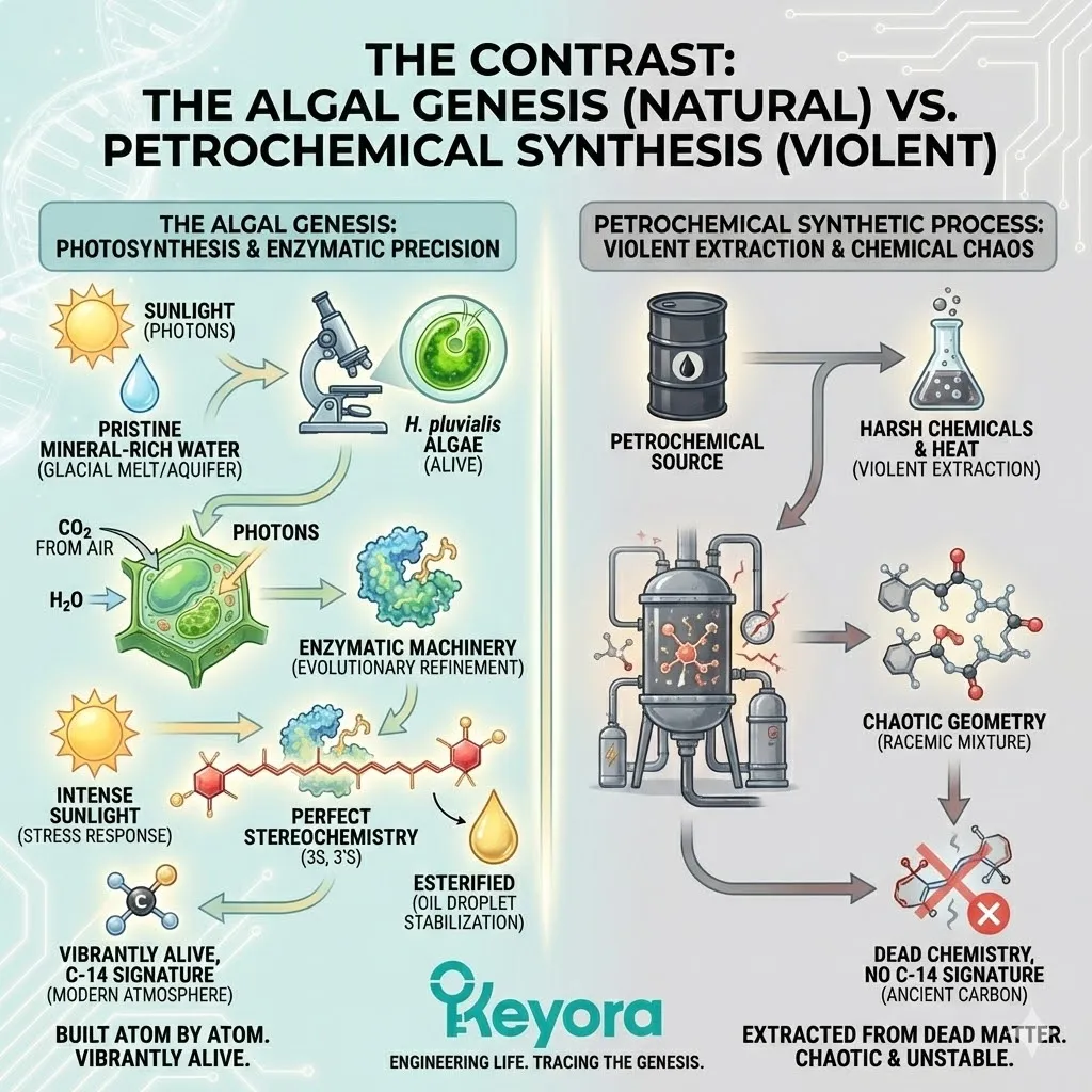 * **Option A (Life):** *Haematococcus pluvialis*. Solar-forged, Enzymatic precision, Esterified armor, Evolutionary compatibility.