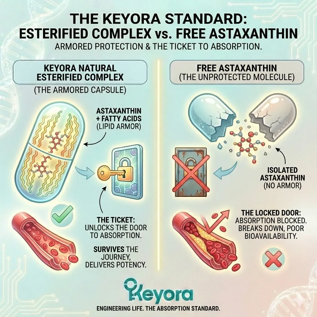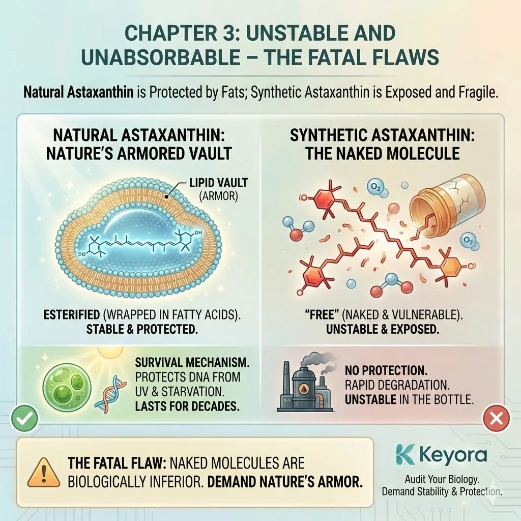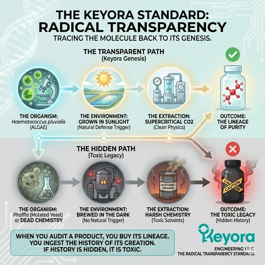 * **Option A (Life):** *Haematococcus pluvialis*. Solar-forged, Enzymatic precision, Esterified armor, Evolutionary compatibility.