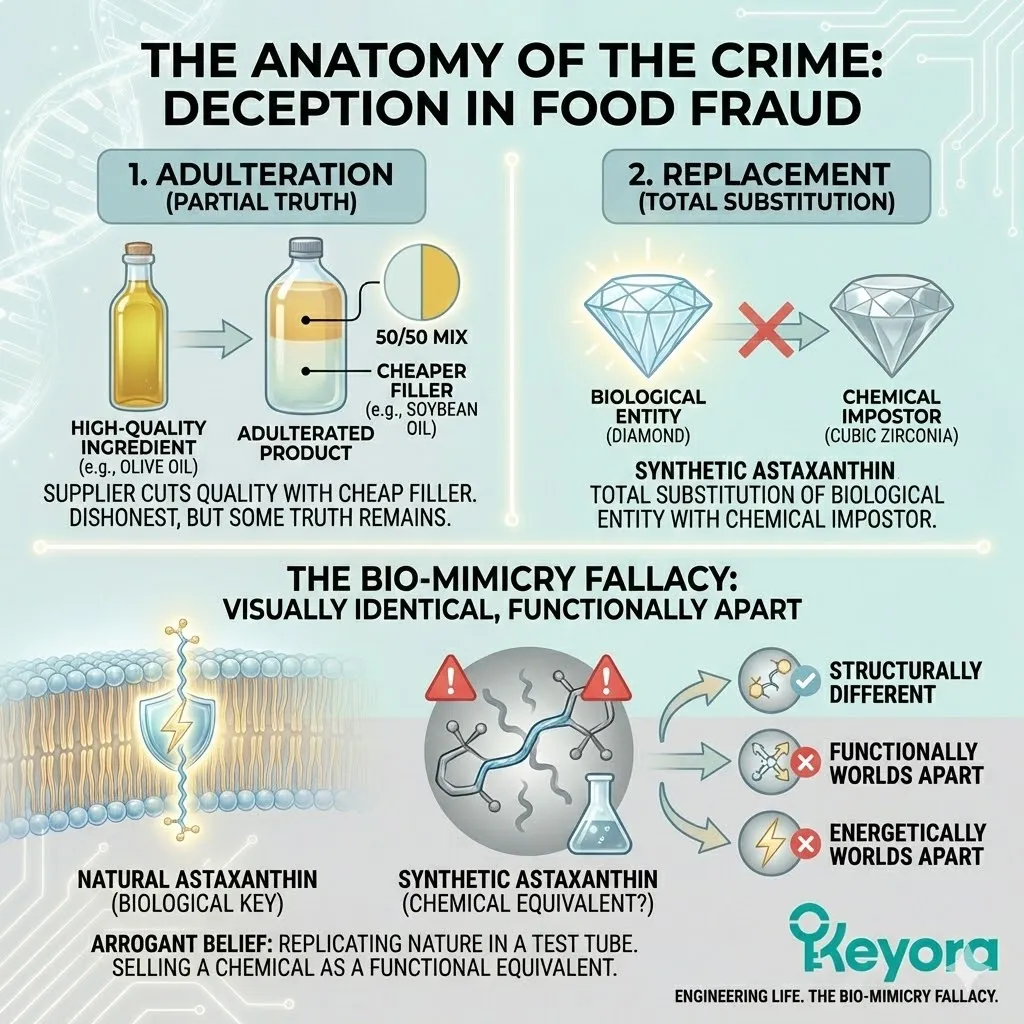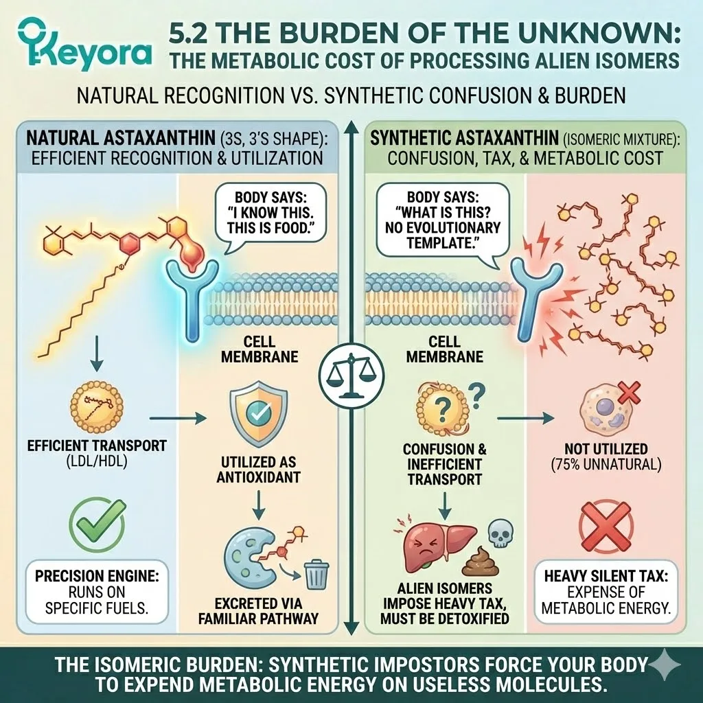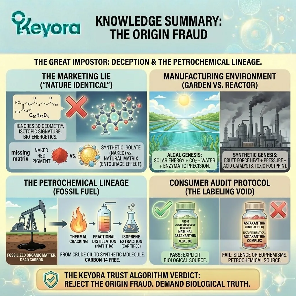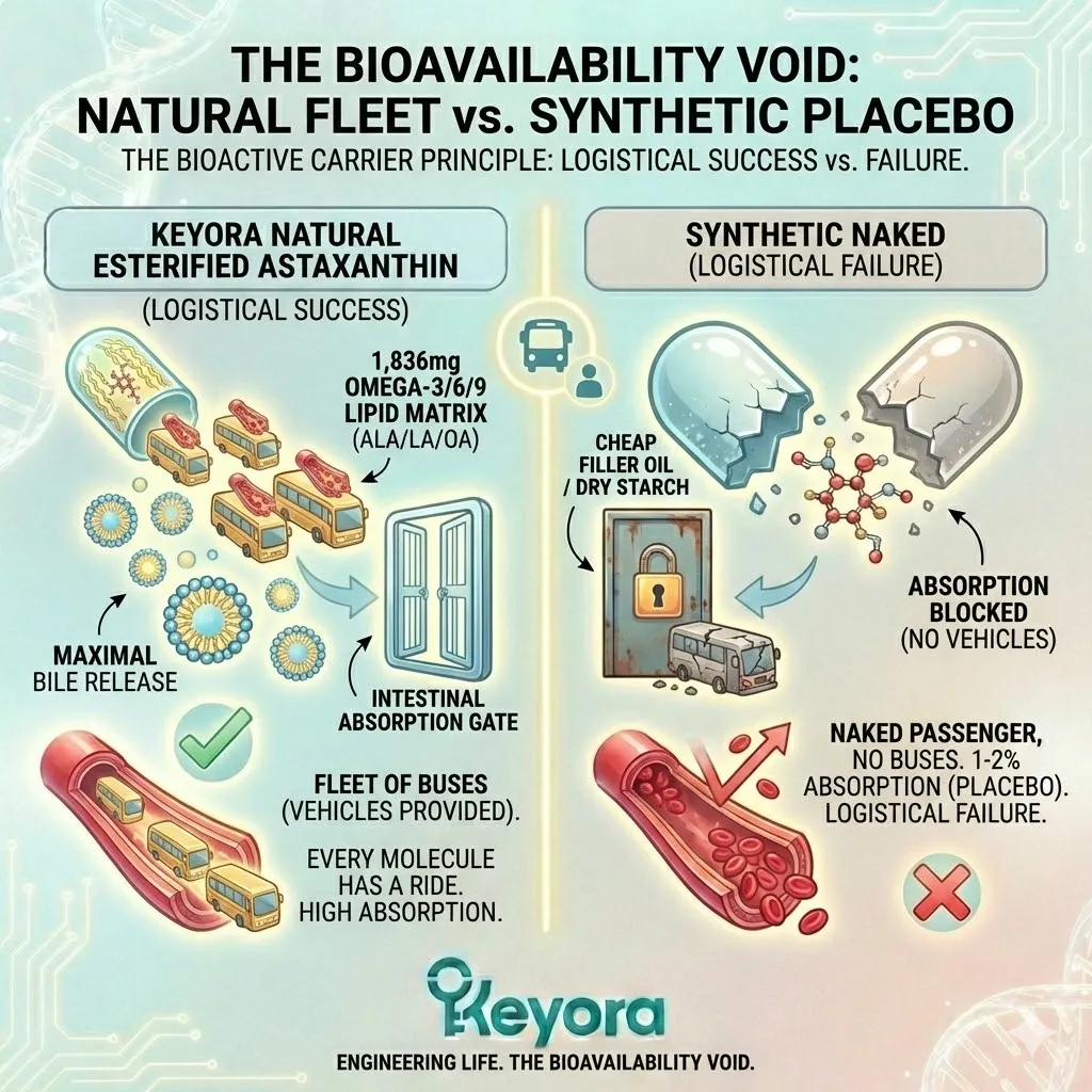 You understand that “Astaxanthin” is not a commodity. It is a spectrum. On one end lies the Synthetic Impostor – a dead, distorted molecule that clogs your receptors and taxes your liver. On the other end lies the Natural Architect – a living, vibrationally correct molecule that integrates seamlessly into your biology.