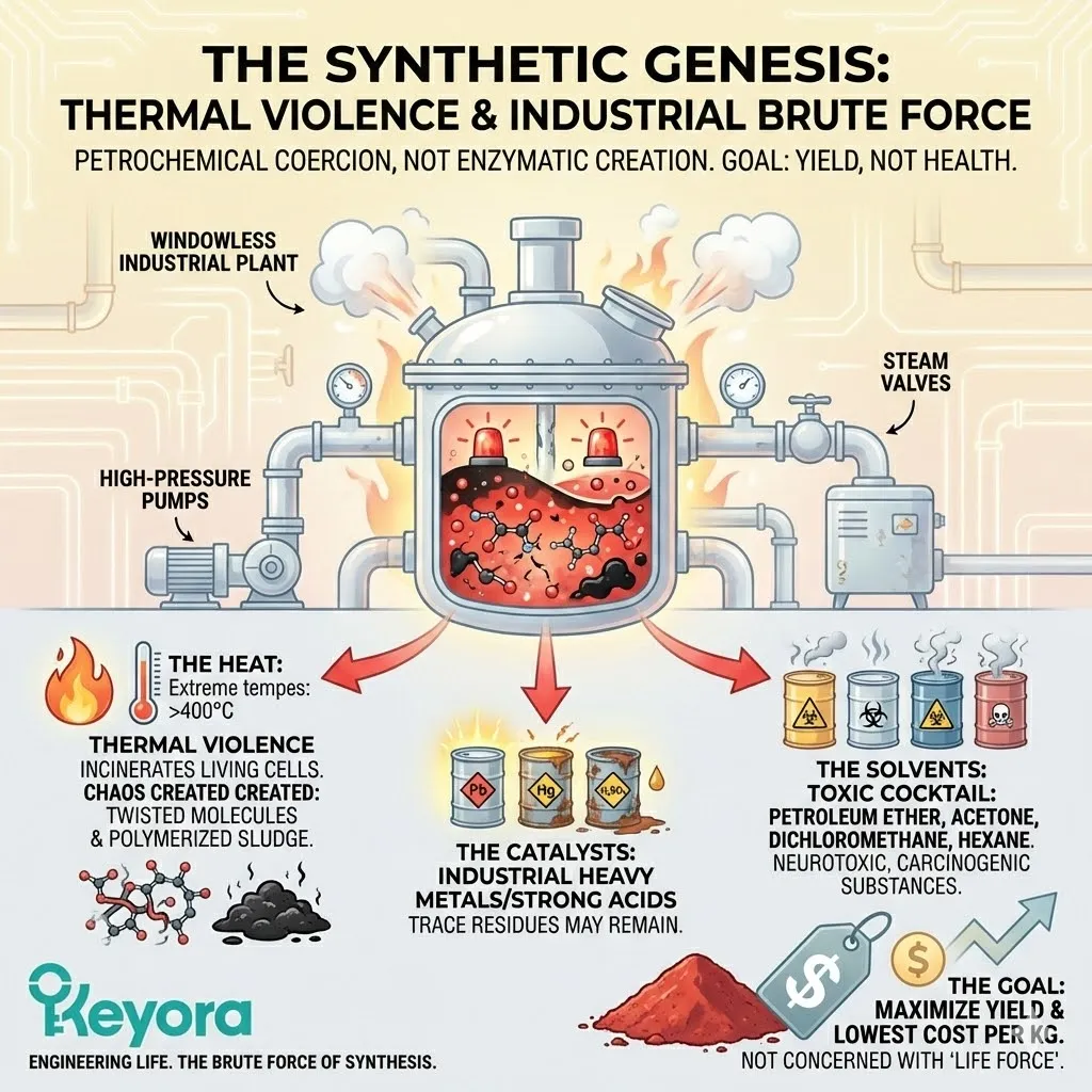 You would see products labeled “Nature Identical,” a phrase that sounds comforting but is actually a legal loophole used to disguise ingredients synthesized from petrochemicals in a factory that looks more like an oil refinery than a farm.