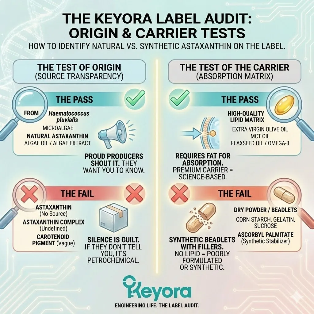 * *Fail:* Vague terms like “Astaxanthin Complex,” “Carotenoid Pigment,” or silent origin.