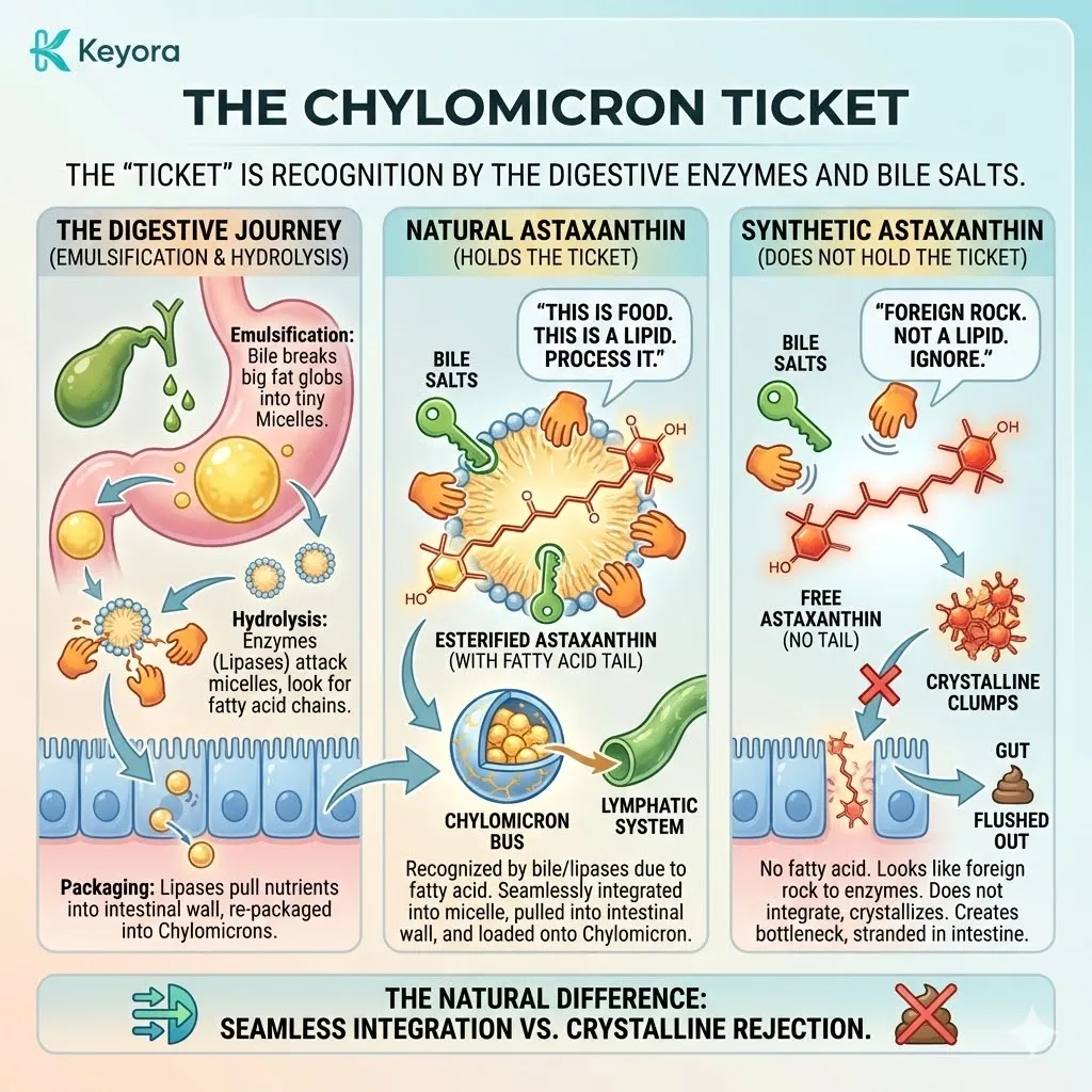 * **The Outcome:** A multi-stage rocket. The Lipids rebuild the cell wall; The Astaxanthin armors it.