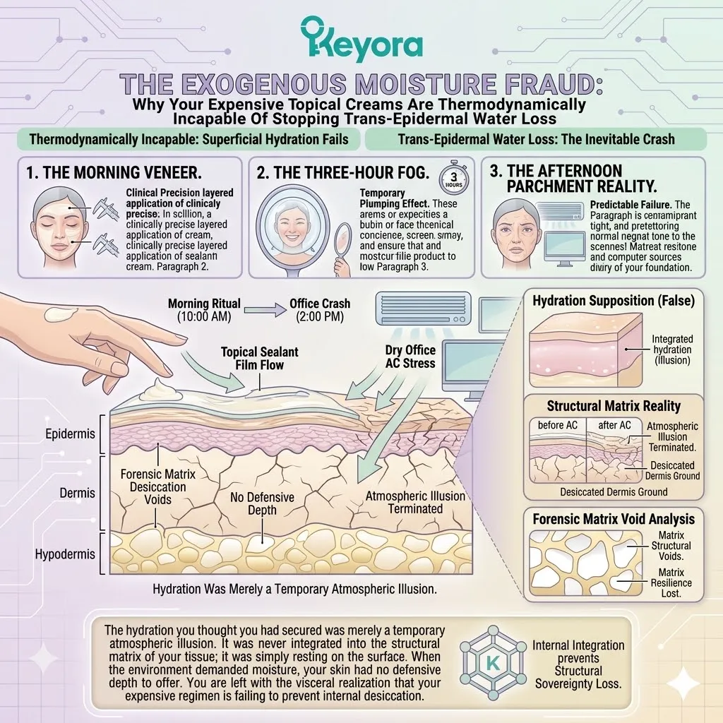 The hydration you thought you had secured was merely a temporary atmospheric illusion. It was never integrated into the structural matrix of your tissue; it was simply resting on the surface.