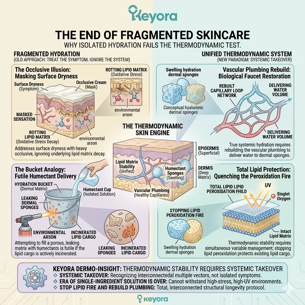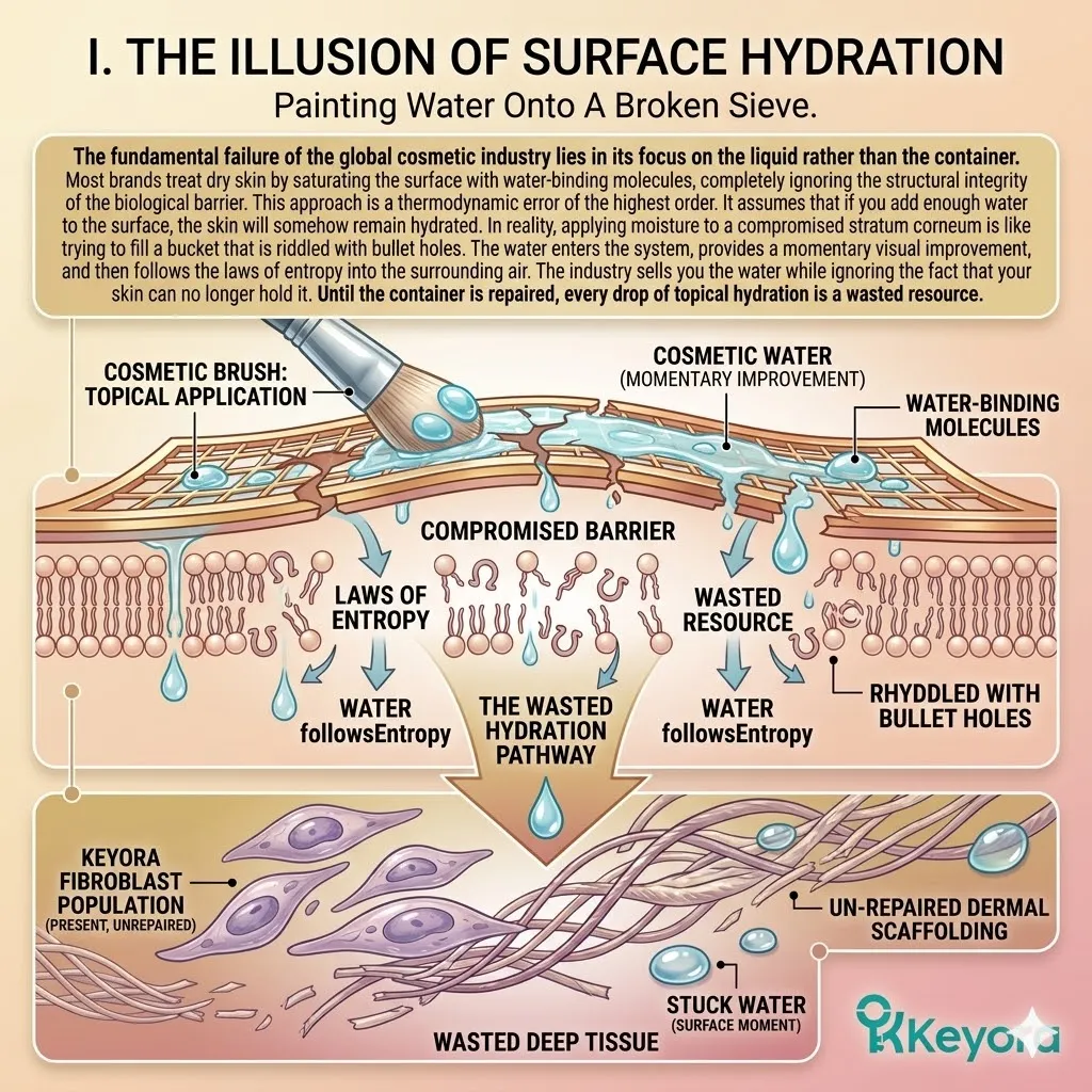 Most brands treat dry skin by saturating the surface with water-binding molecules, completely ignoring the structural integrity of the biological barrier. This approach is a thermodynamic error of the highest order. It assumes that if you add enough water to the surface, the skin will somehow remain hydrated.