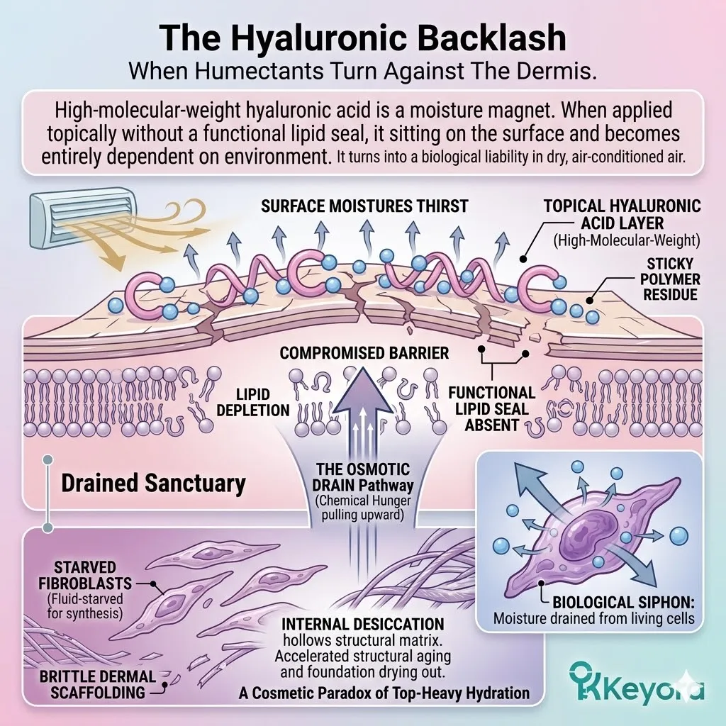 The topical serum acts as a biological siphon, using osmotic pressure to drain the water directly out of your living cells. Instead of hydrating you, your expensive cream is literally stealing the lifeblood of your collagen to maintain its own superficial plumpness.