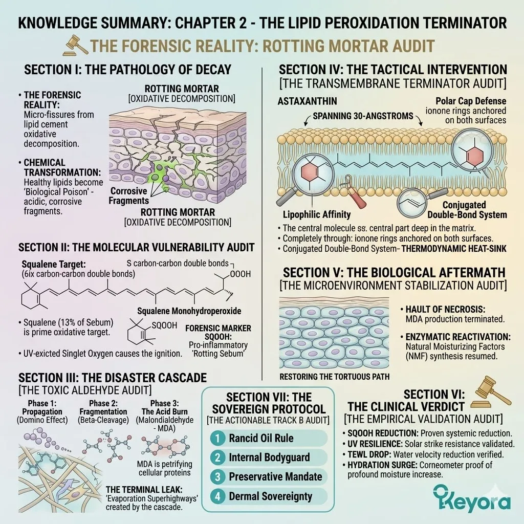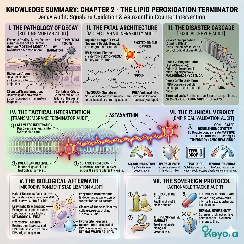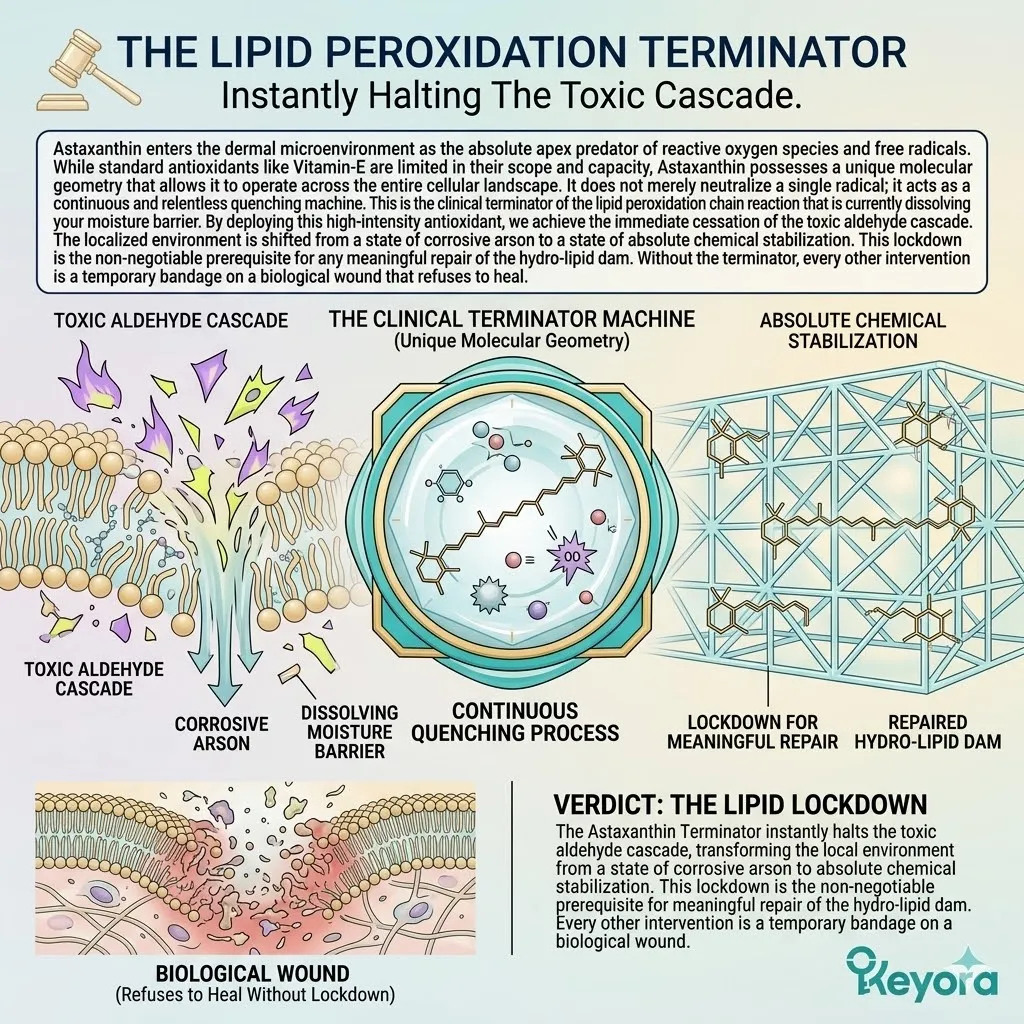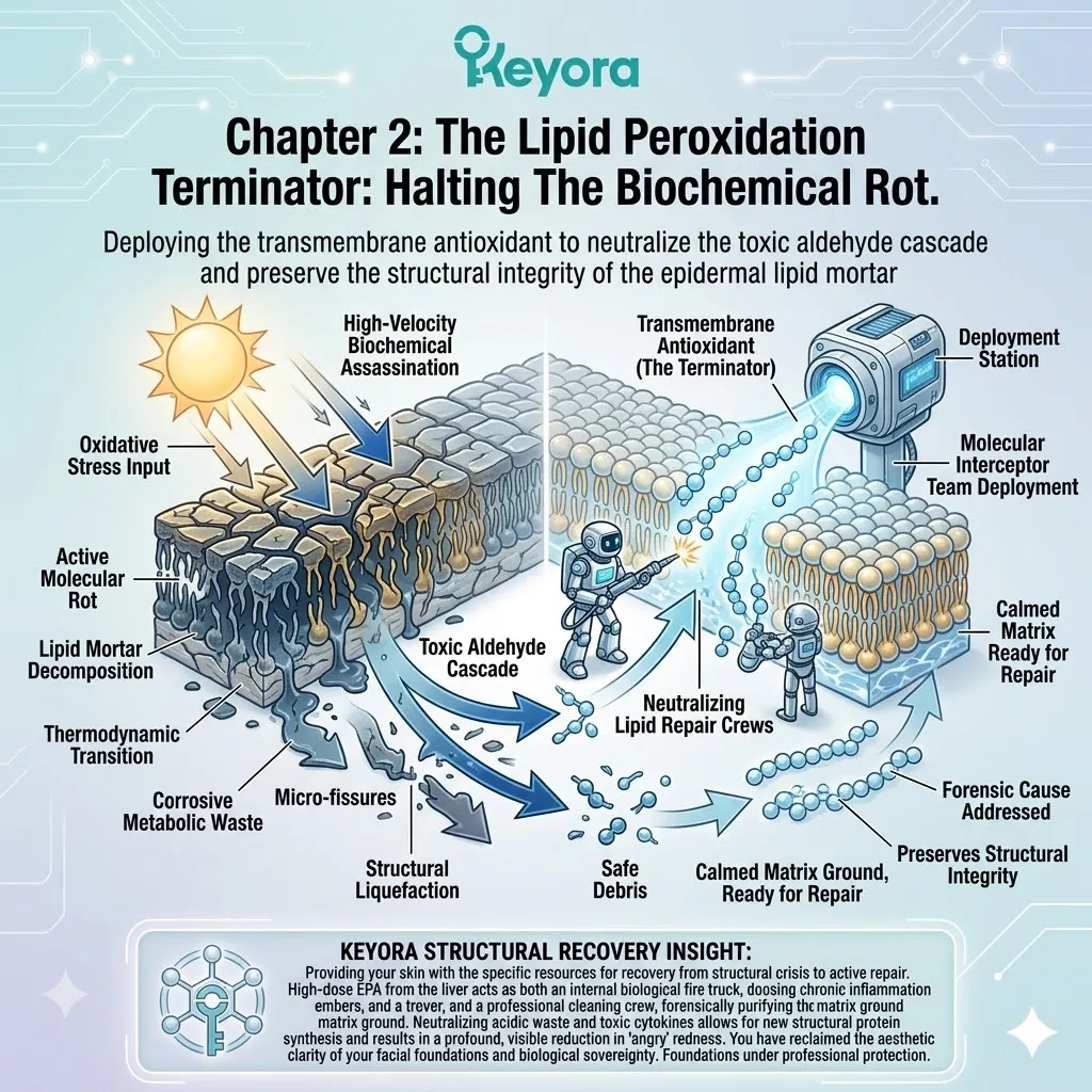 We cannot fix the hydration until we neutralize the toxic byproducts of the rotting mortar. True structural sovereignty requires a total biochemical lockdown of the lipid peroxidation pathway.