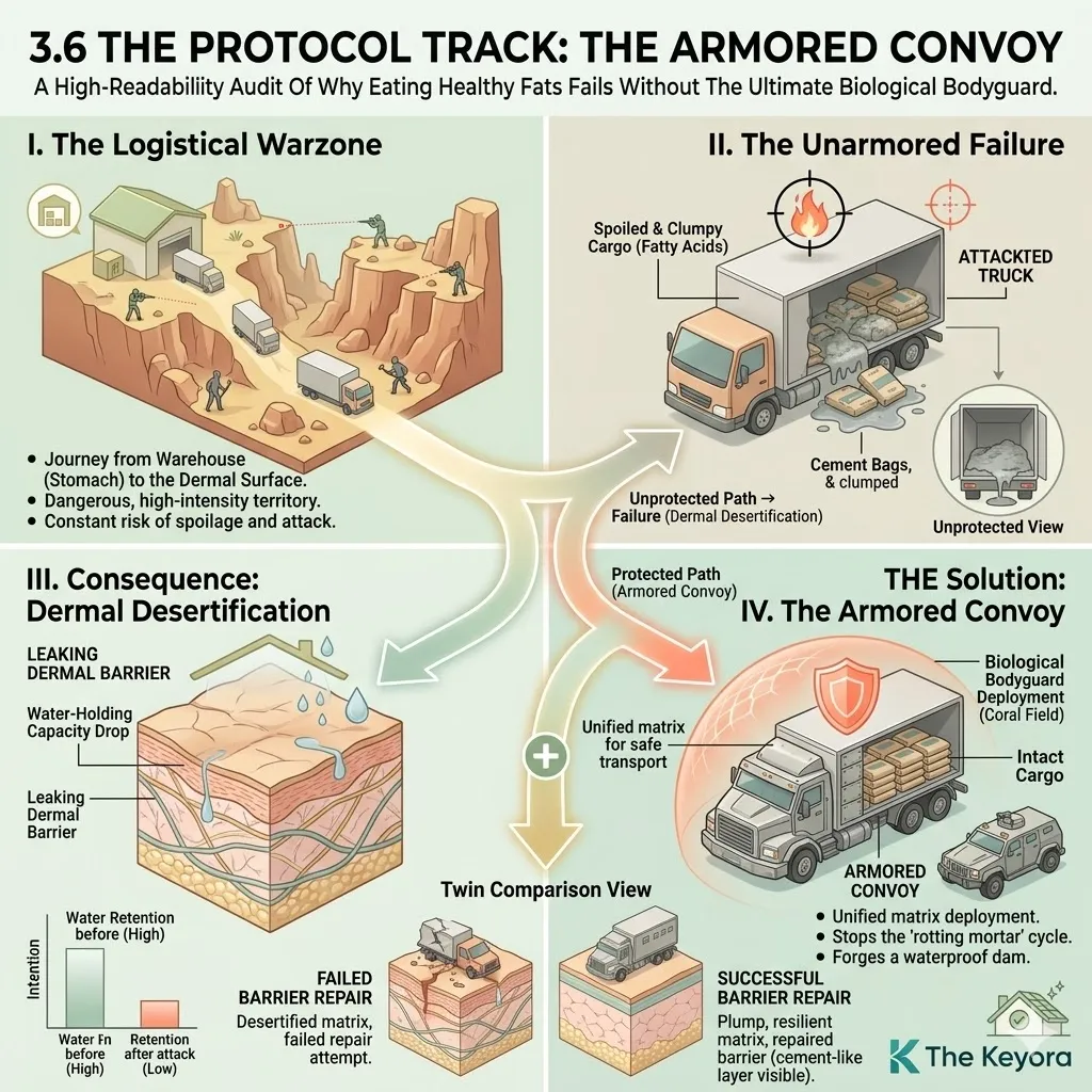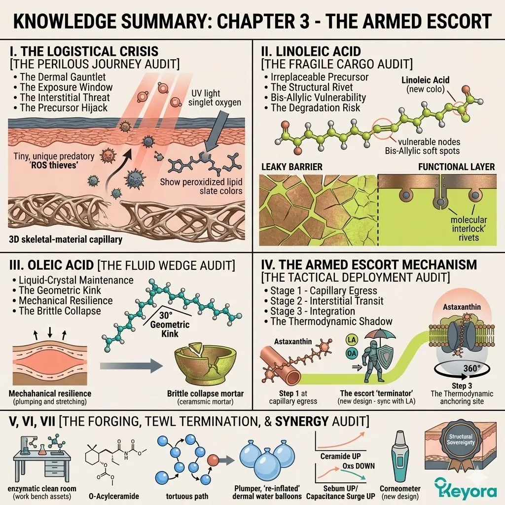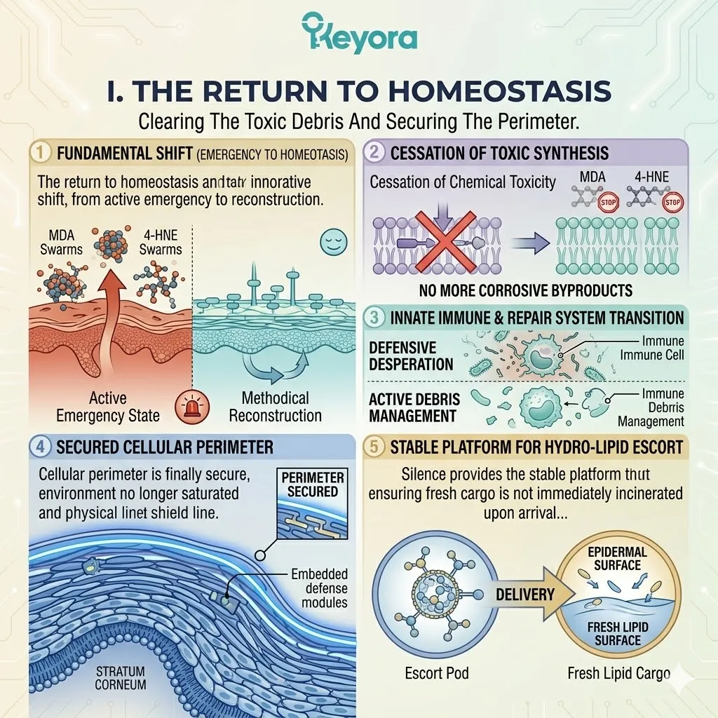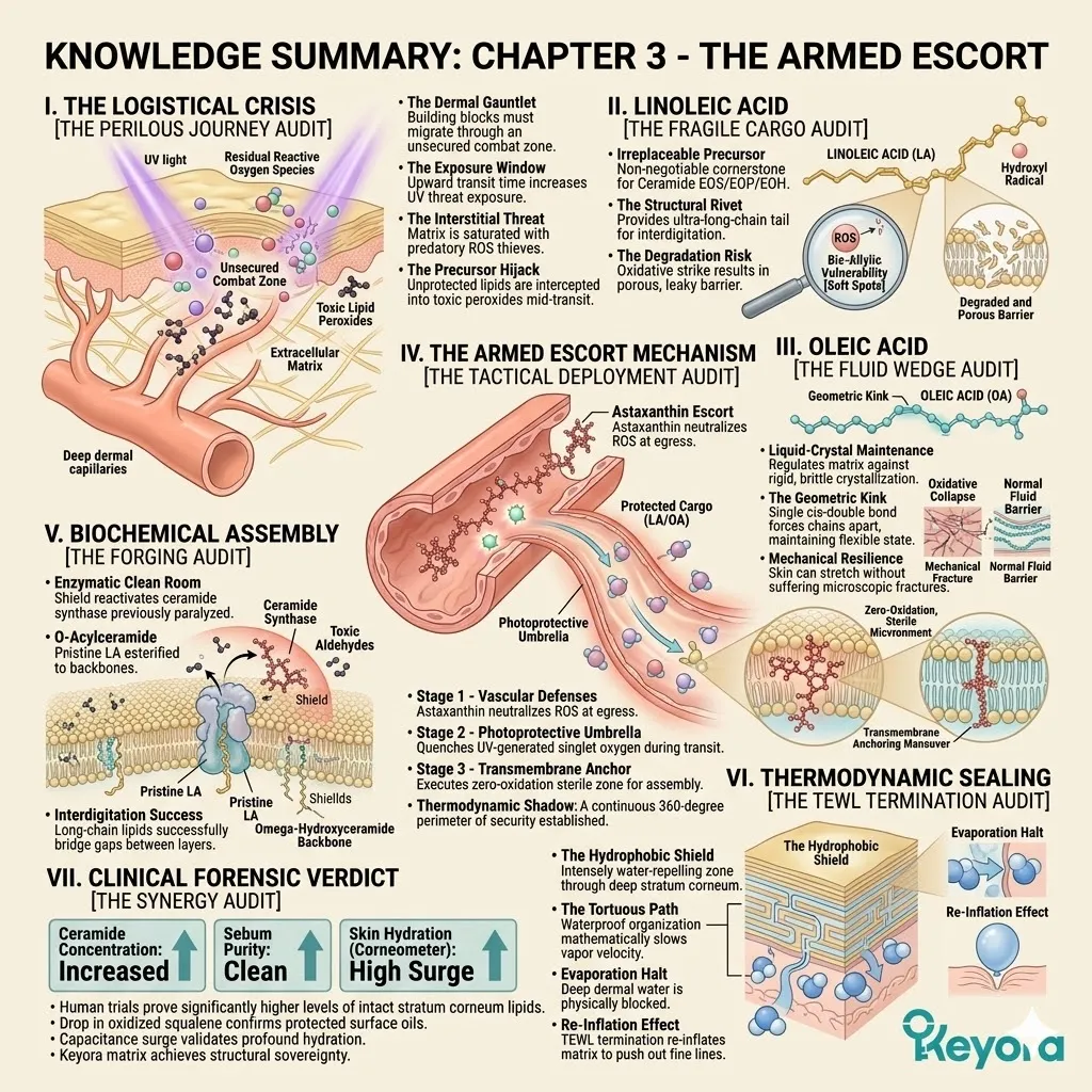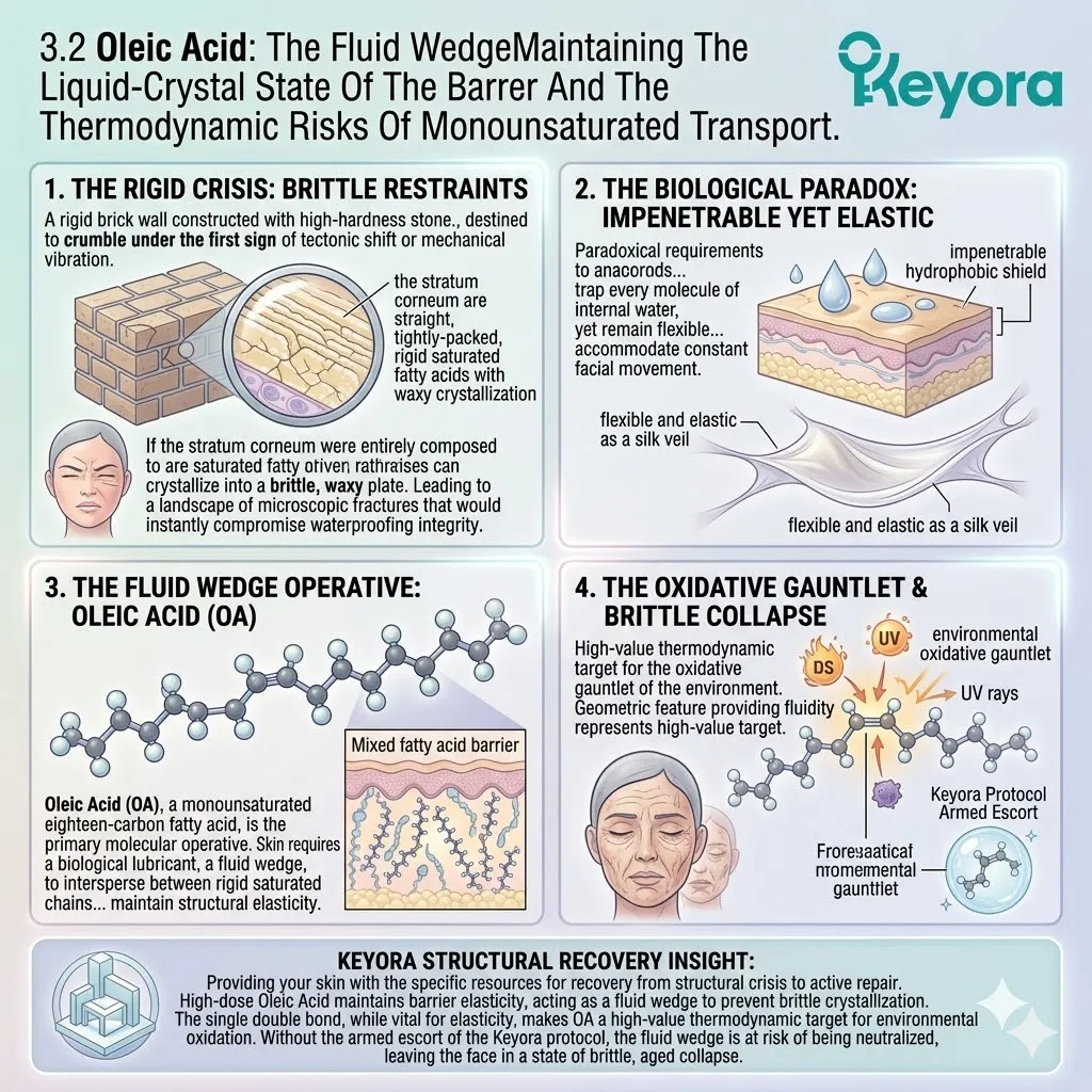 By silencing the inflammatory pathways and quenching the cytokine fire, we have stopped the biological scissors from liquidating your dermal foundations. Simultaneously, we have successfully forged the waterproof seal of the stratum corneum by providing the essential structural cargo of Linoleic Acid and Oleic Acid.