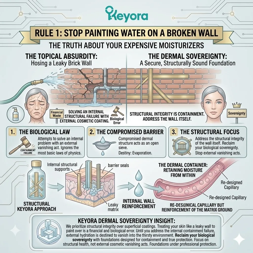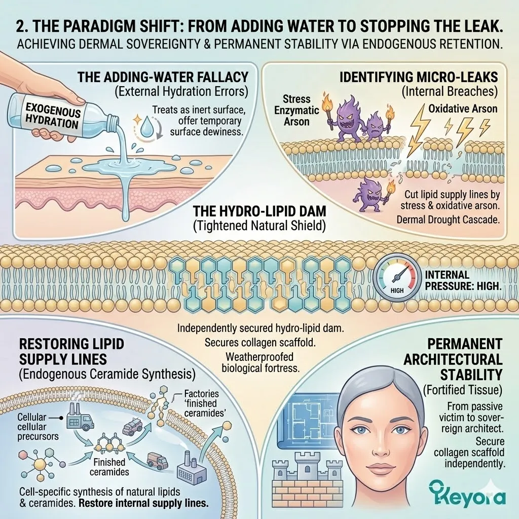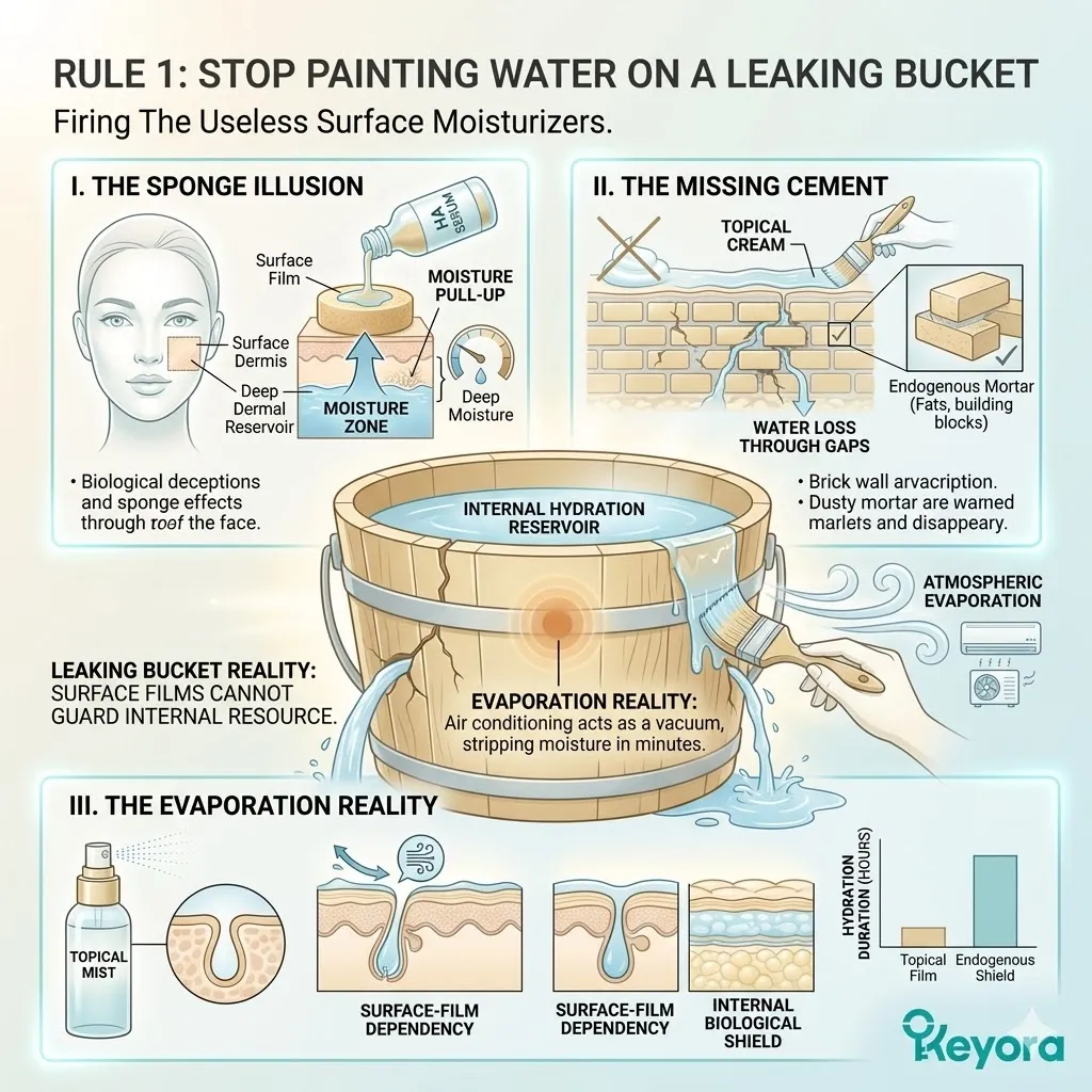 If the roof is leaking, adding more water only accelerates the rot of the underlying structure. True hydration is an architectural achievement that requires a perfect, lipid-rich seal.