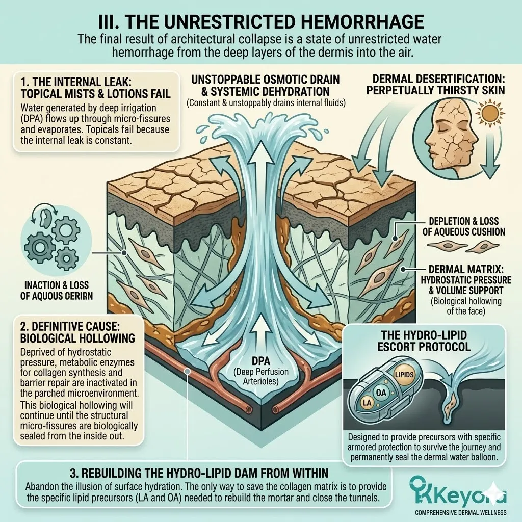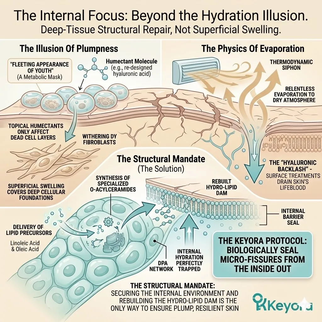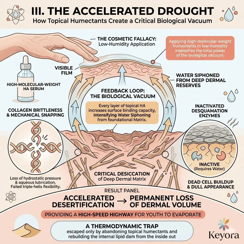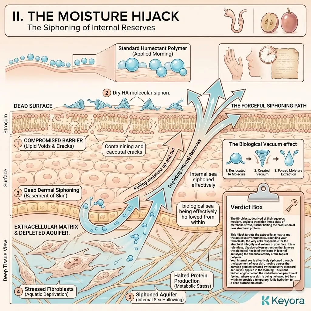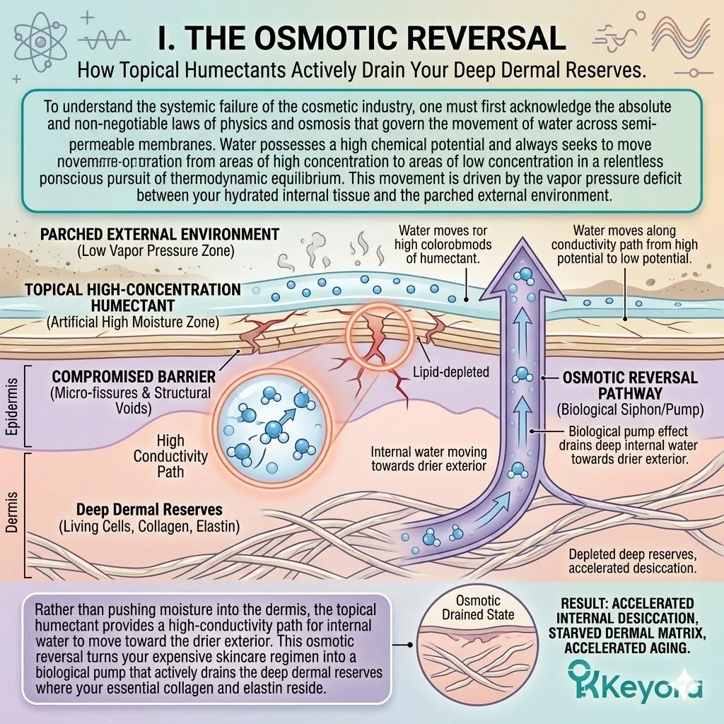 This sets the stage for a catastrophic reversal of the hydration gradient. Your skin is now primed for a process of internal drainage that accelerates structural aging.