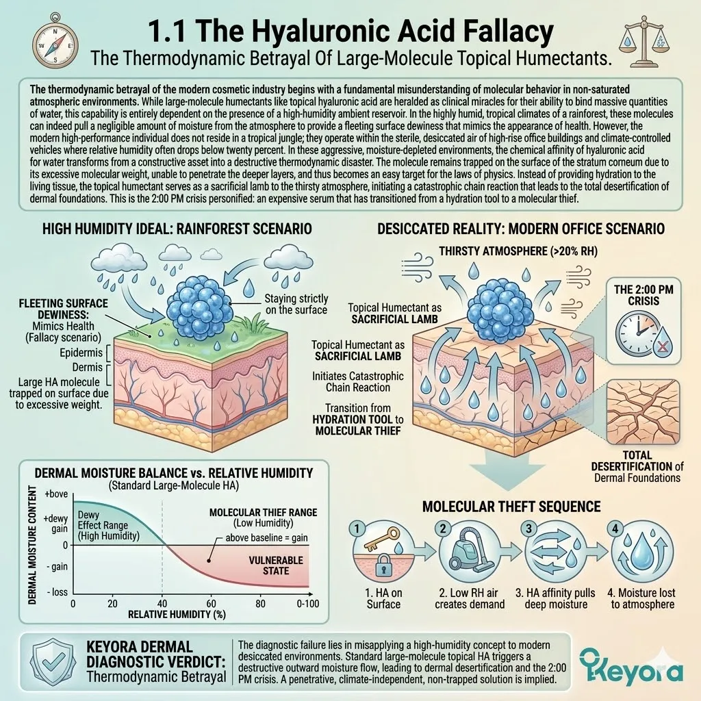 While this is true in a controlled laboratory setting, the topical application of high-molecular-weight humectants in the real world is fraught with risk. These molecules sit on top of the skin, acting as a temporary moisture magnet that is entirely dependent on the surrounding humidity.