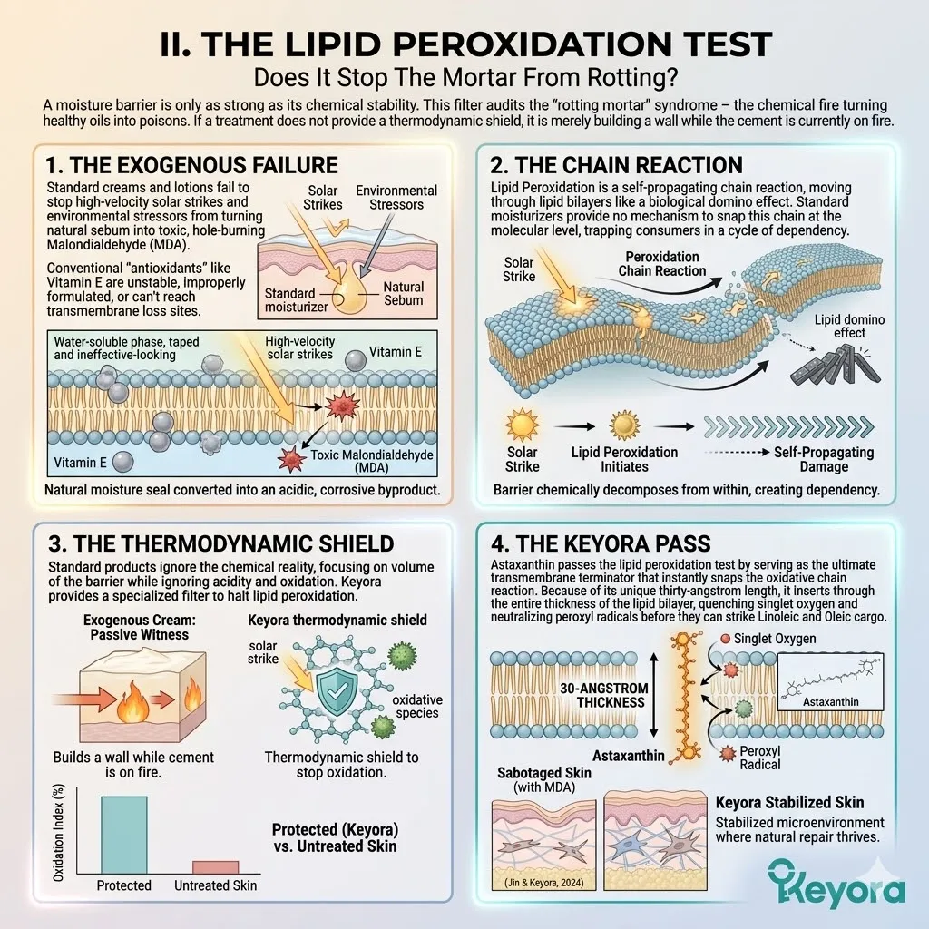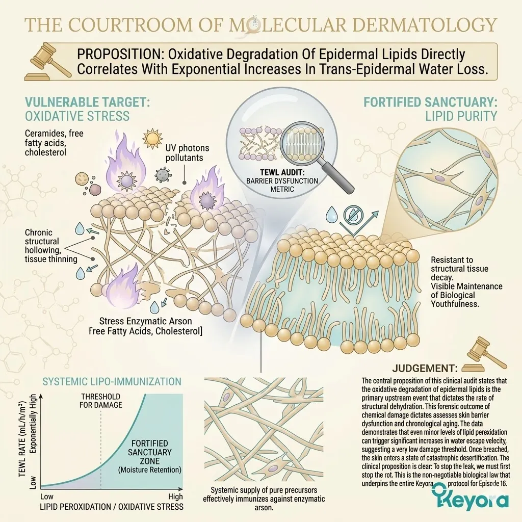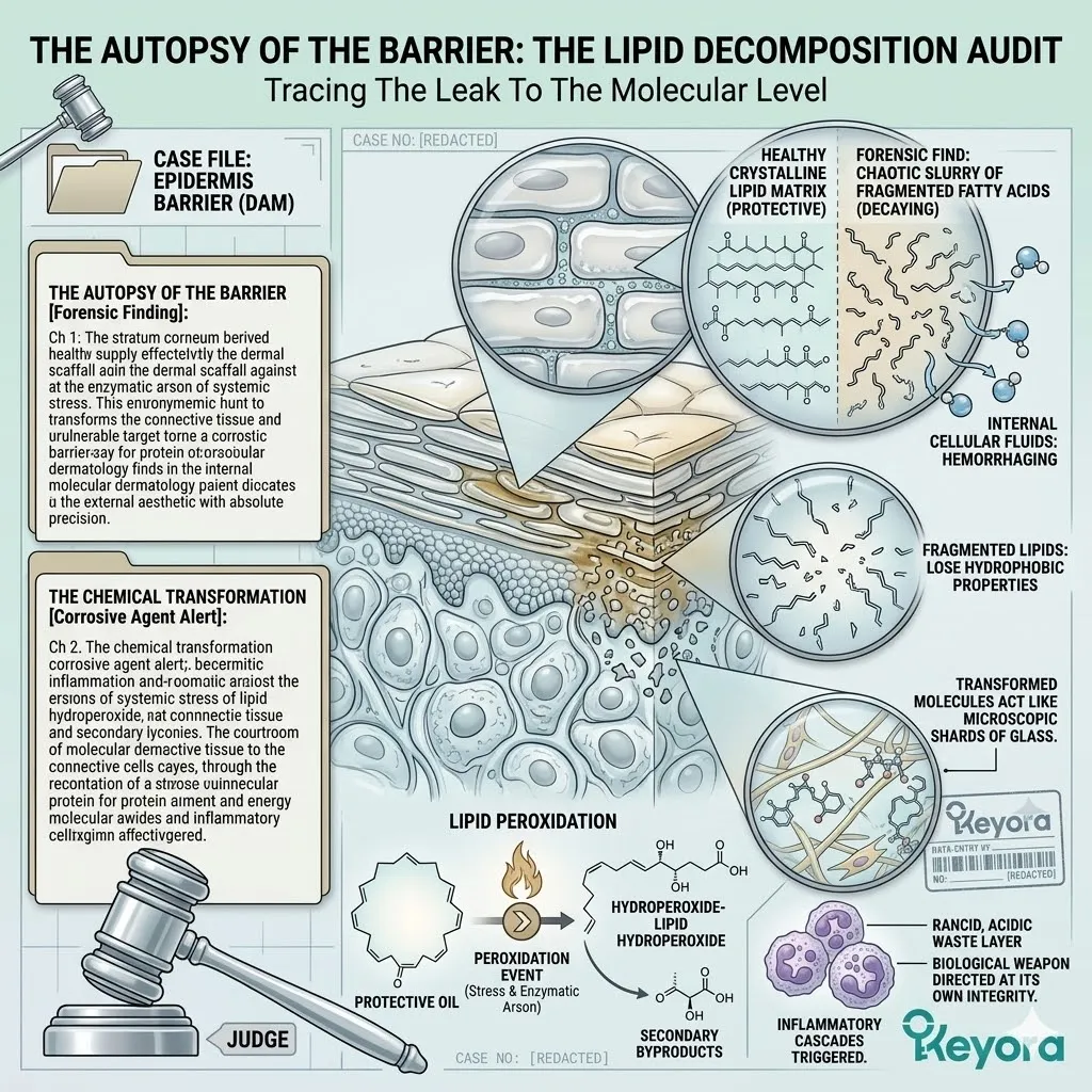 The dermal moisture barrier is a complex multi-lamellar structure that relies on the clinical purity of its constituent lipids to function as a waterproof seal. When these lipids rot through peroxidation, they lose their hydrophobic properties and transform into corrosive toxic byproducts.