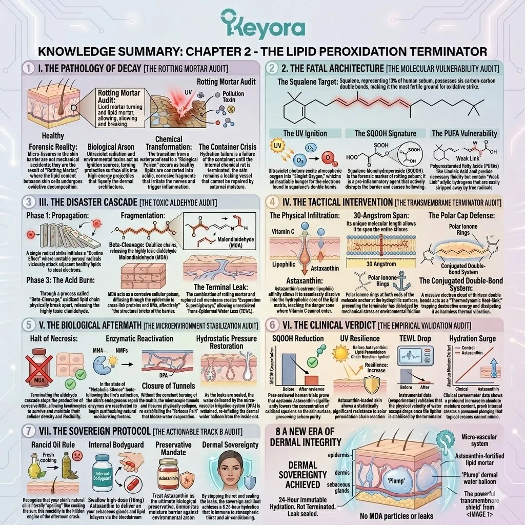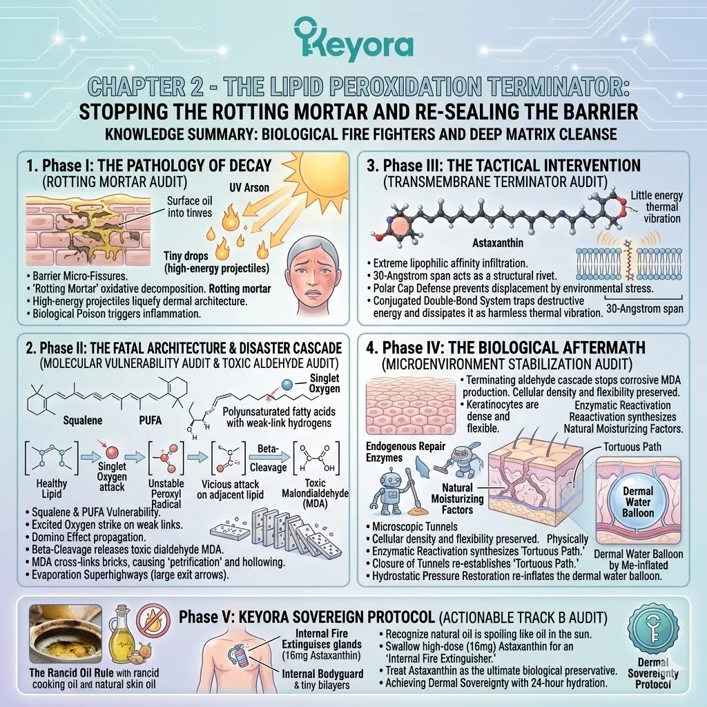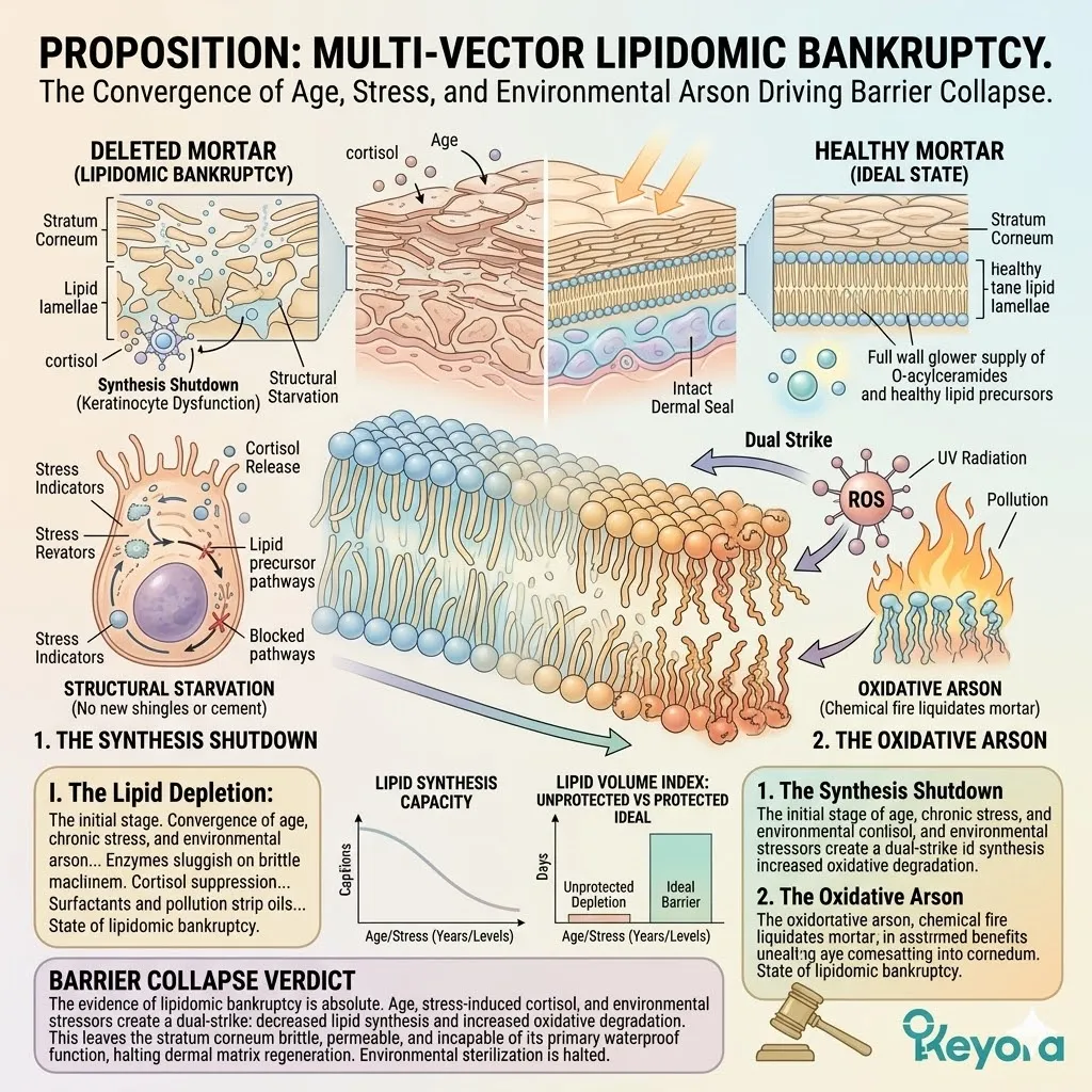 The dermal moisture barrier is a complex multi-lamellar structure that relies on the clinical purity of its constituent lipids to function as a waterproof seal. When these lipids rot through peroxidation, they lose their hydrophobic properties and transform into corrosive toxic byproducts.
