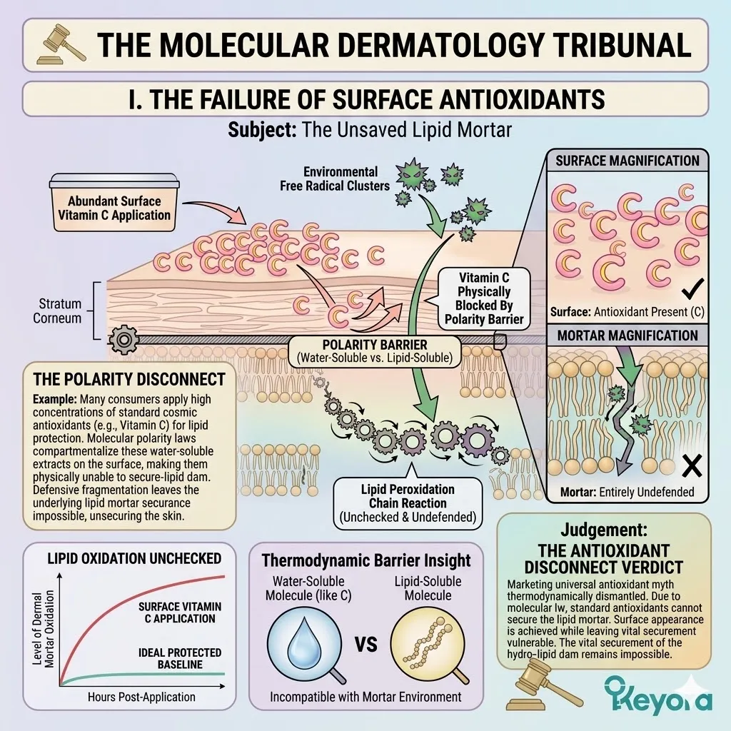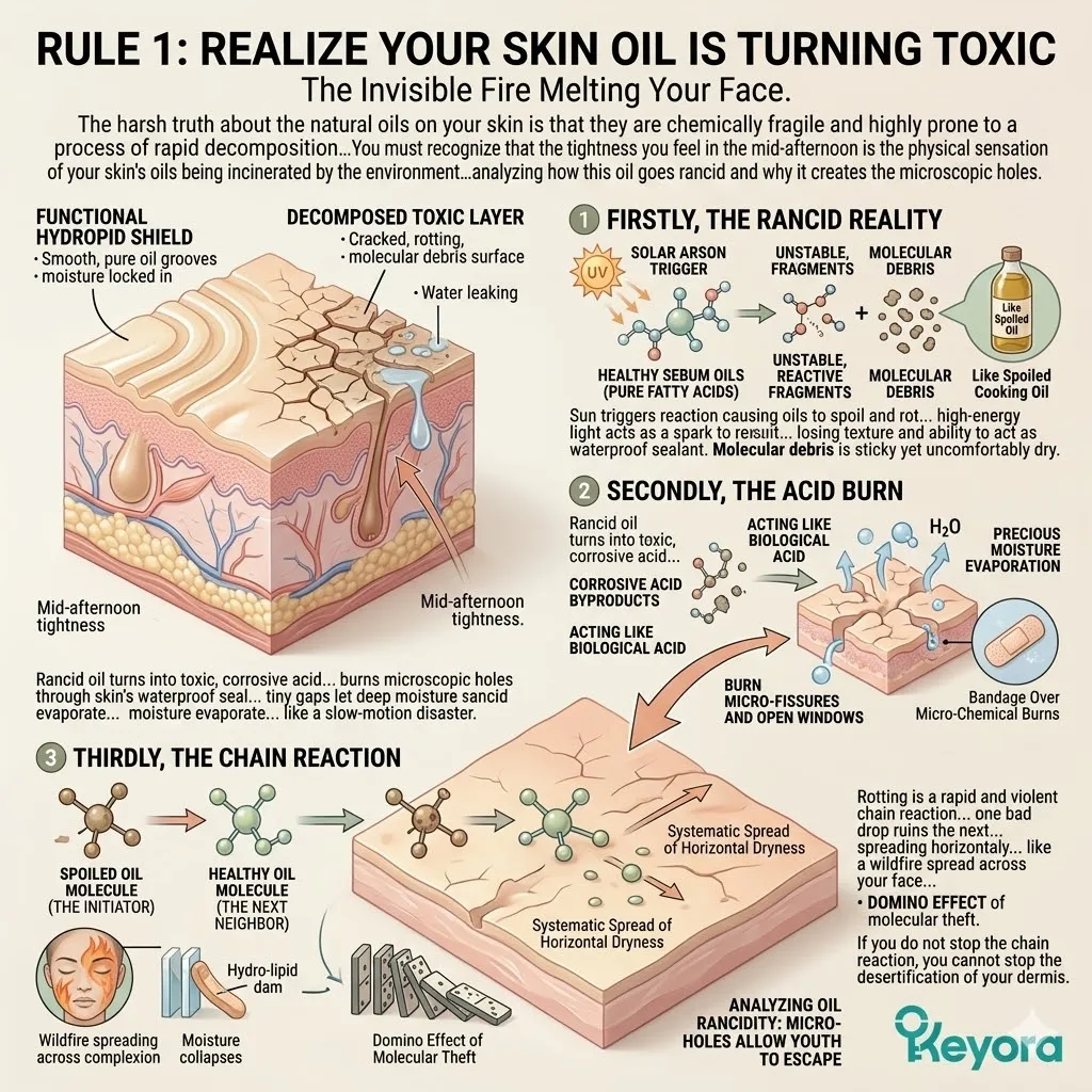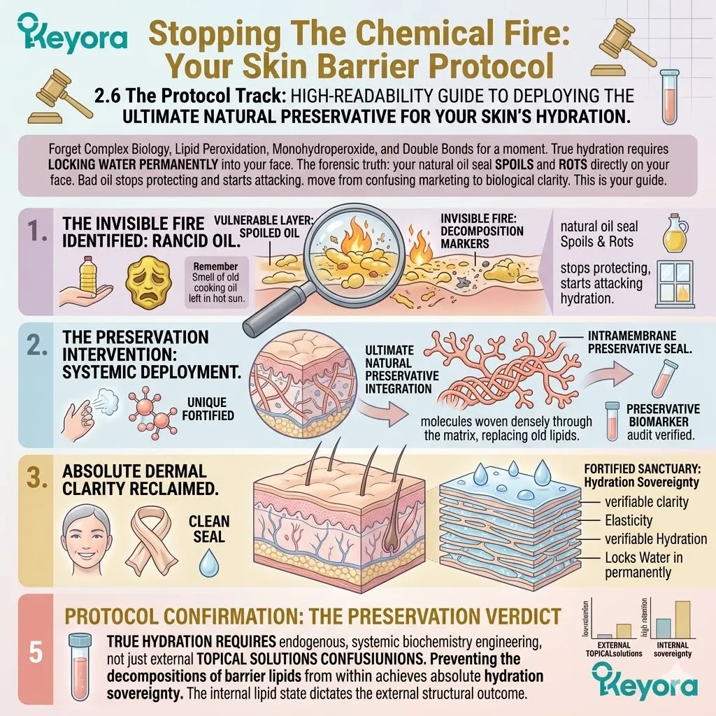 This process is known as lipid peroxidation, a state of oxidative arson that liquidates the integrity of your moisture barrier. When the lipids that compose the barrier become rancid, they lose their physical ability to repel the atmosphere and seal in the internal sea. The cement becomes a brittle, fractured slurry that can no longer sustain the mechanical pressure of facial movement. This is not a hydration crisis; it is a structural decomposition at the molecular level.