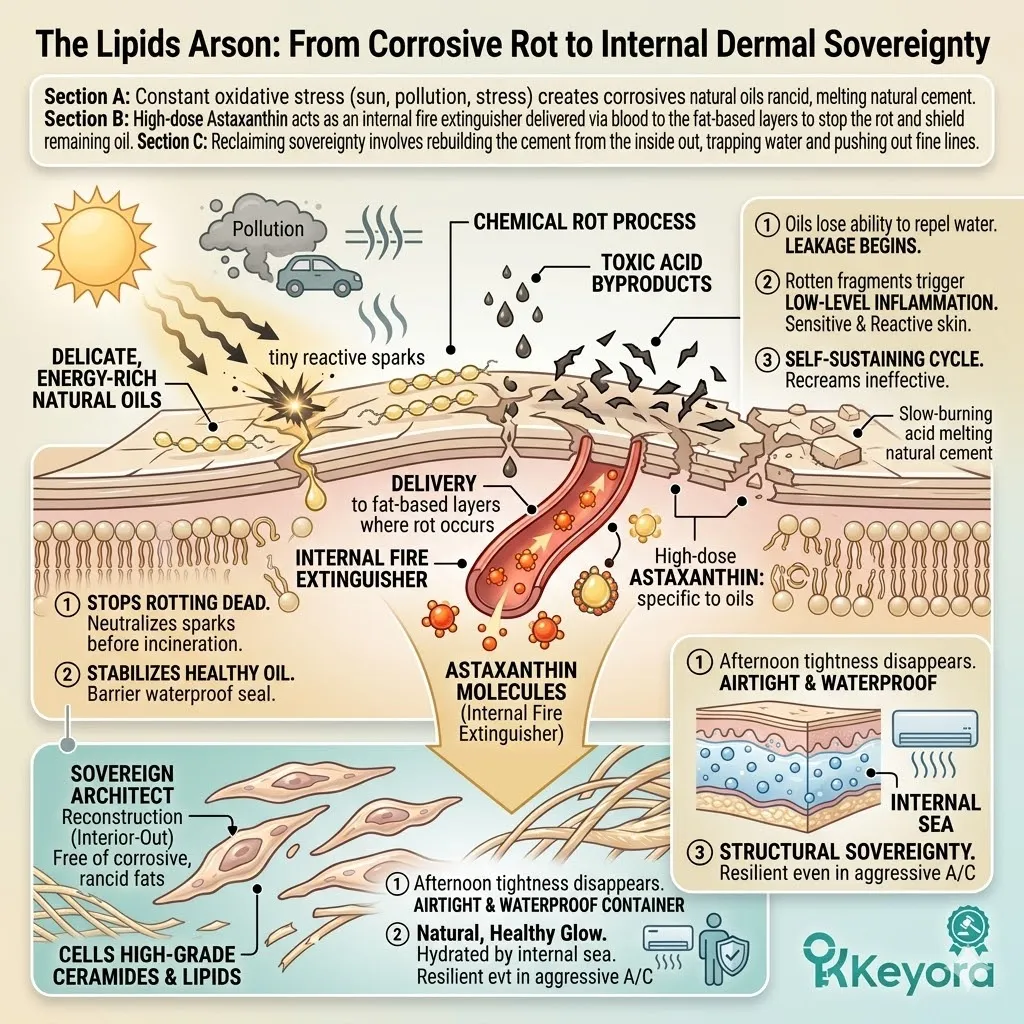 Keyora Astaxanthin EP-16: The Hydro-Lipid Escort: Astaxanthin’s Absolute Defense Against Dermal Evaporation