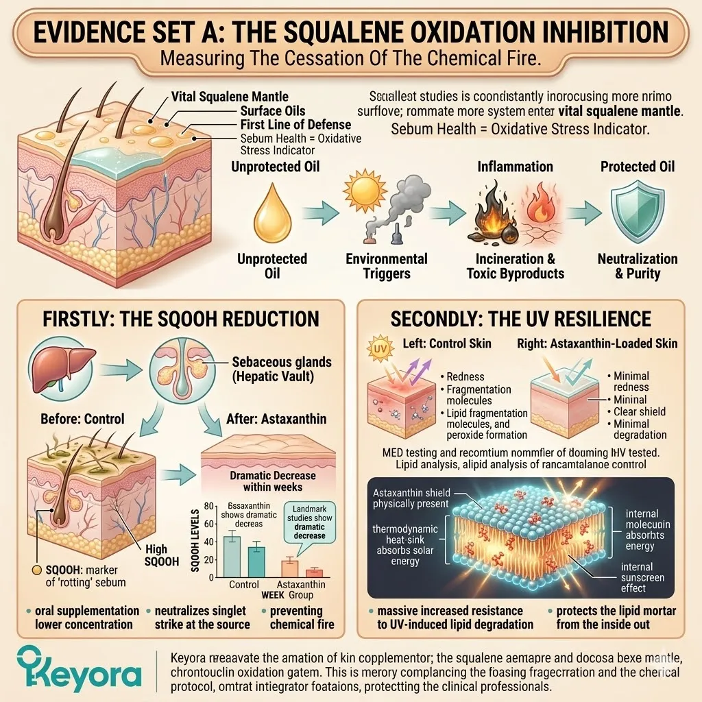 * **The Oxidation Drop:** Peer-reviewed proof that systemic intervention significantly lowers Squalene Monohydroperoxide (SQOOH) on the skin surface.