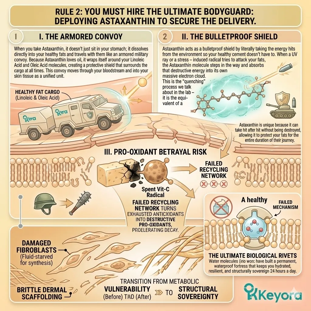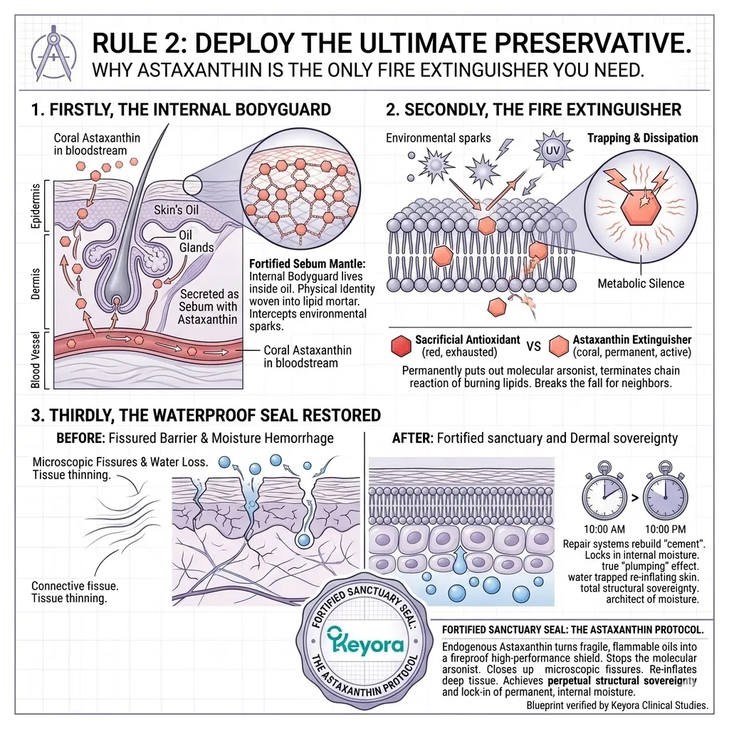 * **Rule 2: Stop Your Skin’s Cement From Rotting:** Use Astaxanthin as an “Internal Fire Extinguisher” to prevent your natural oils from going rancid.