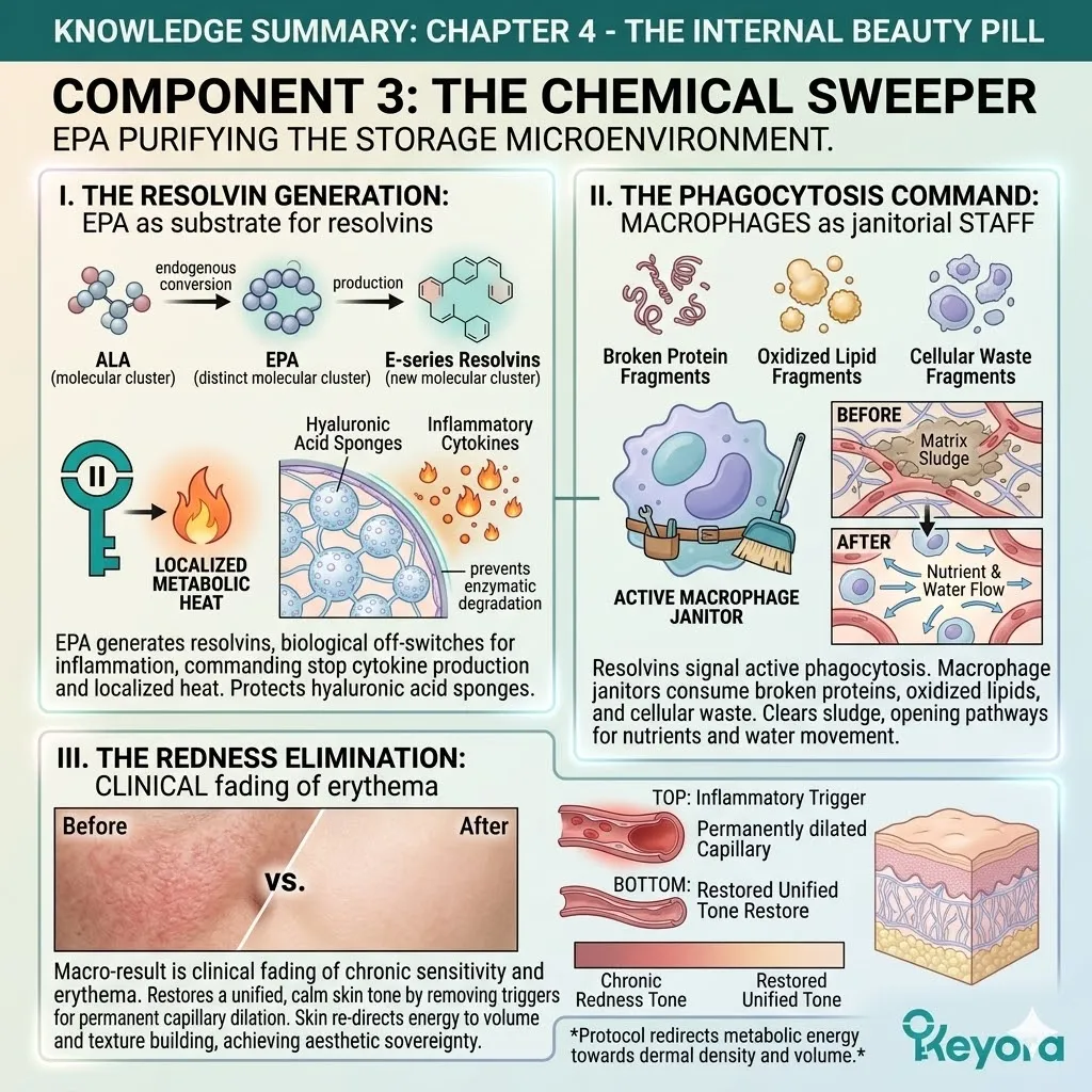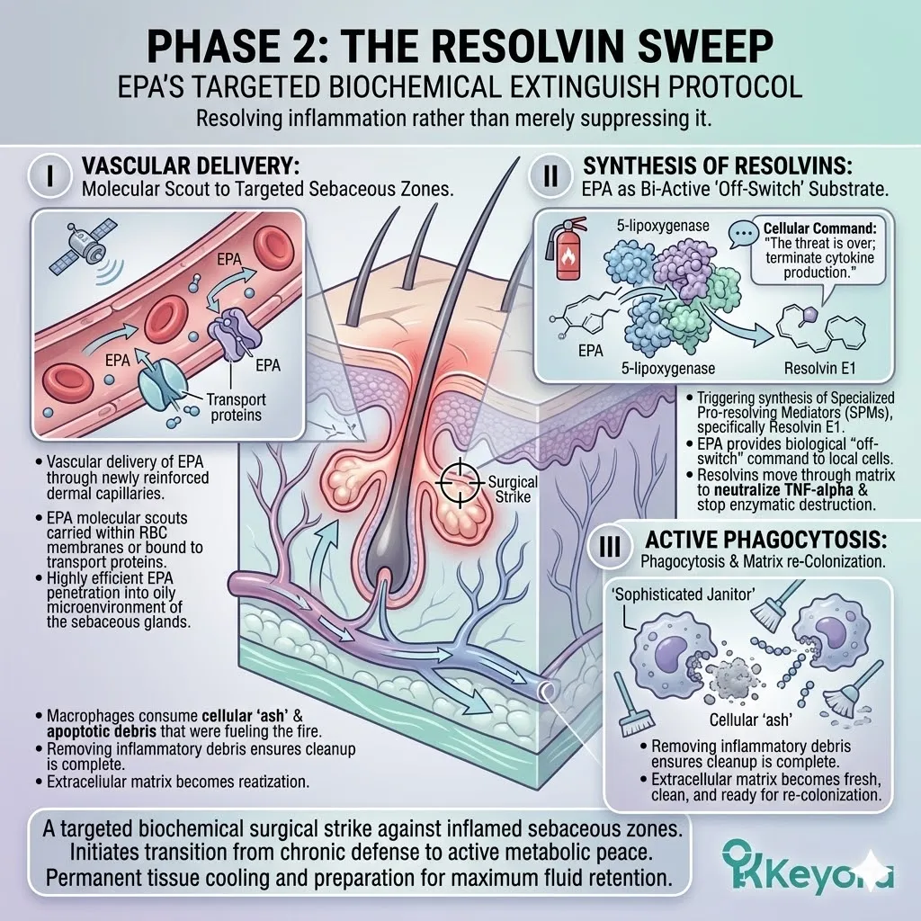 – Commands “Active Phagocytosis,” instructing macrophages to eat cellular debris and inflammatory “ash.”