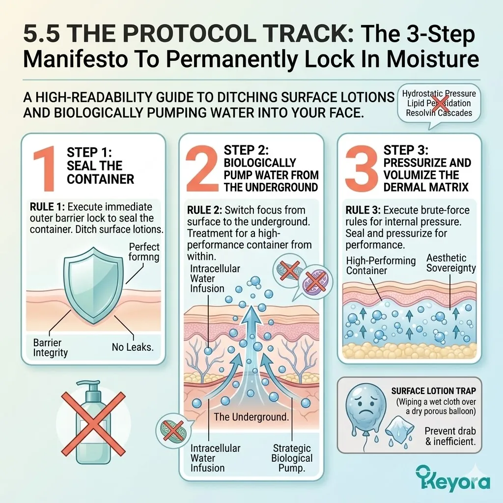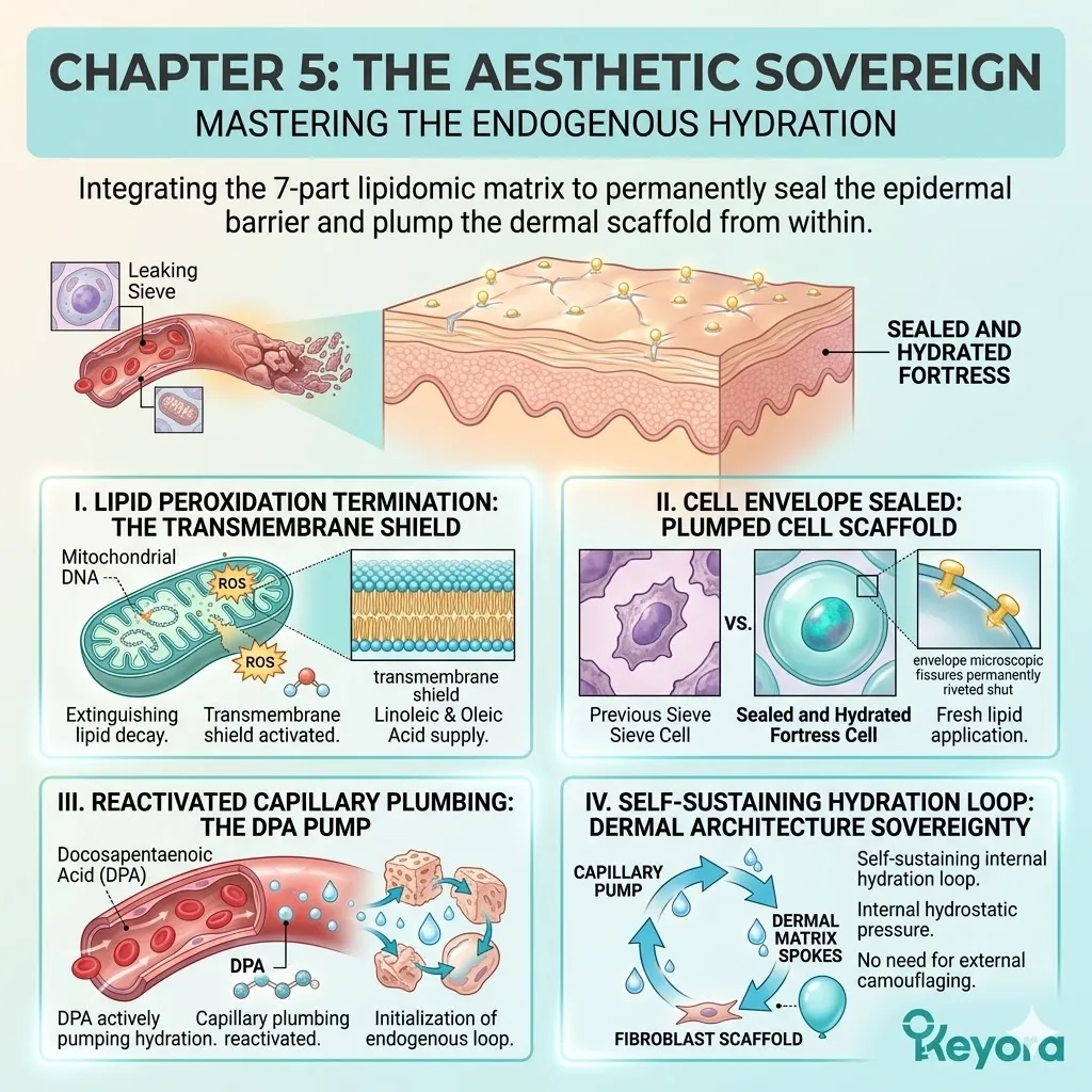* **The Sealed and Hydrated Fortress:** The final state where lipid decay is terminated, the barrier is riveted shut, and internal irrigation is fully pressurized.