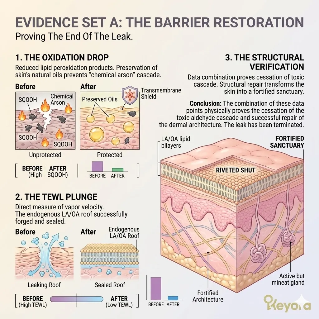 * **The TEWL Plunge:** Evaporimeter data confirming a drastic reduction in water loss velocity, proving the LA/OA roof is functional.