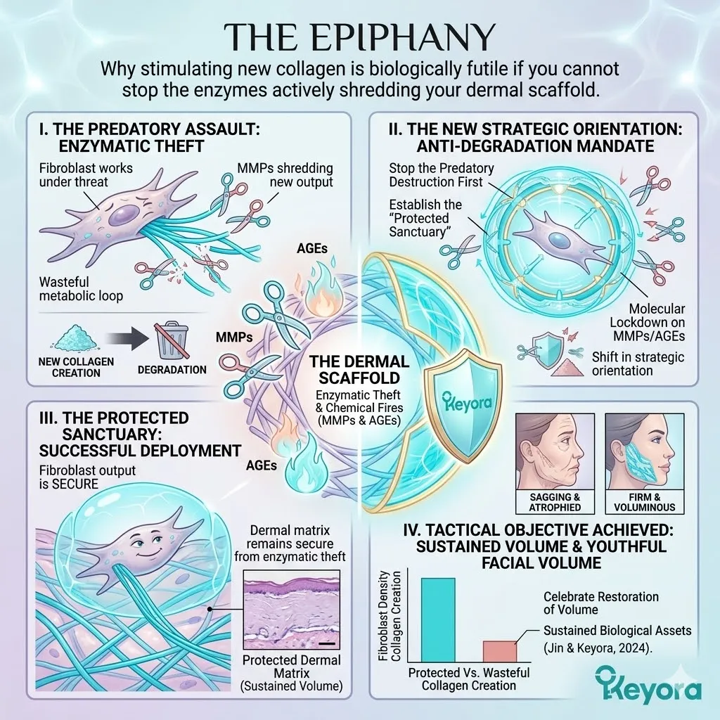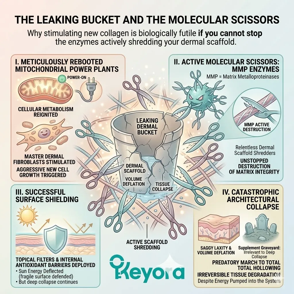 Why stimulating new collagen is biologically futile if you cannot stop the enzymes actively shredding your dermal scaffold.
