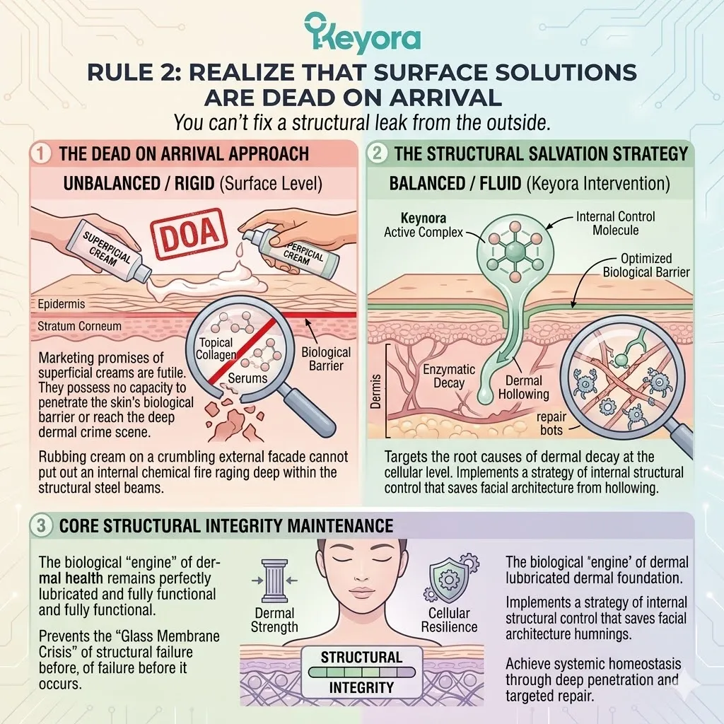 Without first sealing this gaping hole of enzymatic destruction, your attempts to restore dermal volume and youthful snap-back tension are equivalent to a desperate struggle against the inescapable laws of physics and biological entropy.