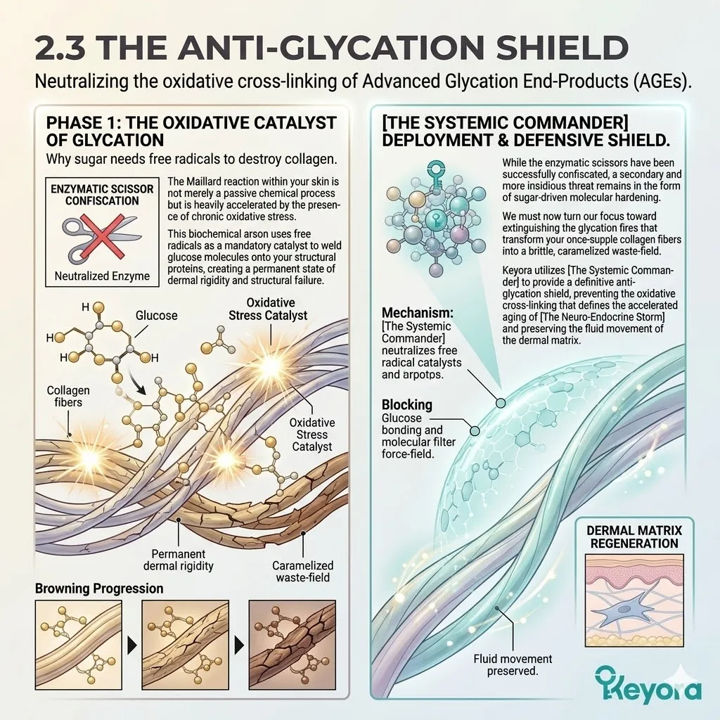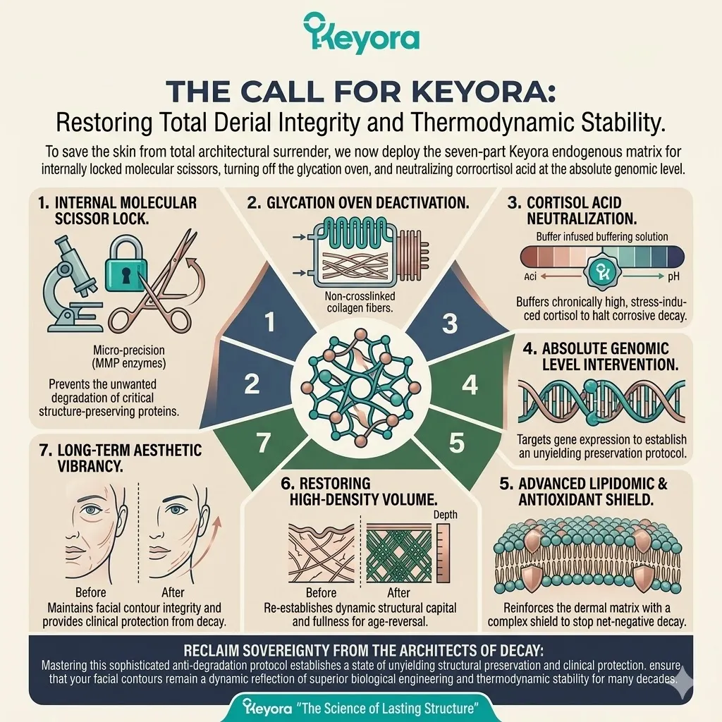 The secondary enemy in this biological war is the formation of Advanced Glycation End-products, which act as a slow-moving chemical fire that burns through the remaining structural scaffold of your face.