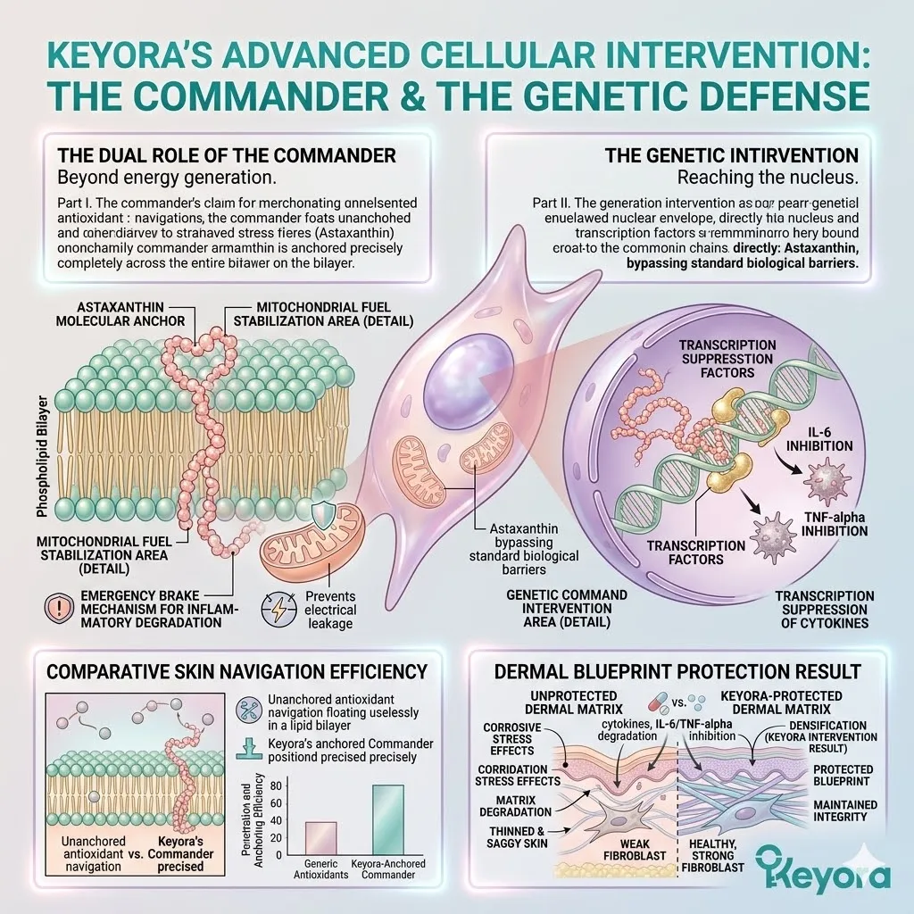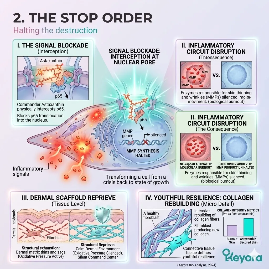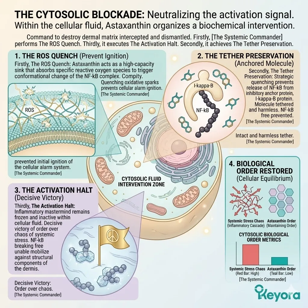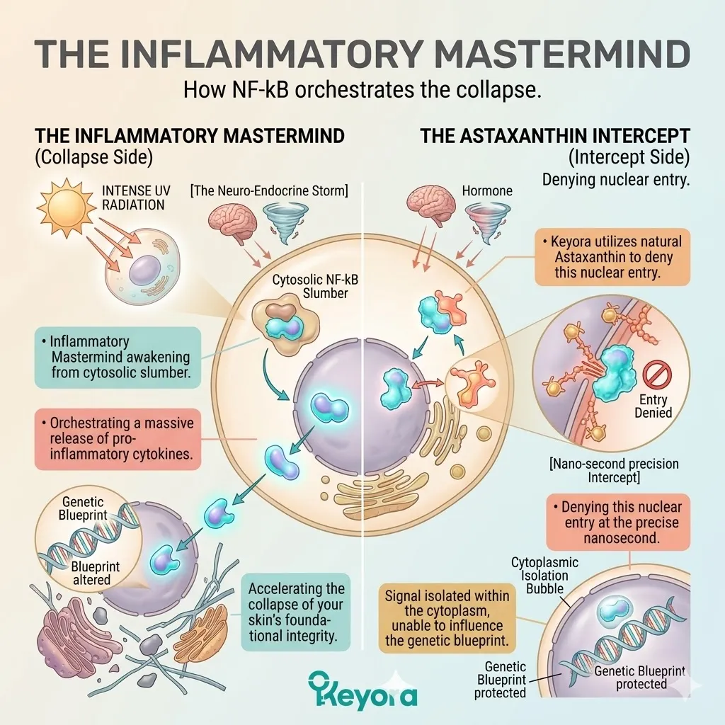 We must understand how natural astaxanthin successfully penetrates the nuclear envelope of the dermal fibroblast to silence the high-voltage NF-kB signaling pathway at the absolute genomic level of human physiology.