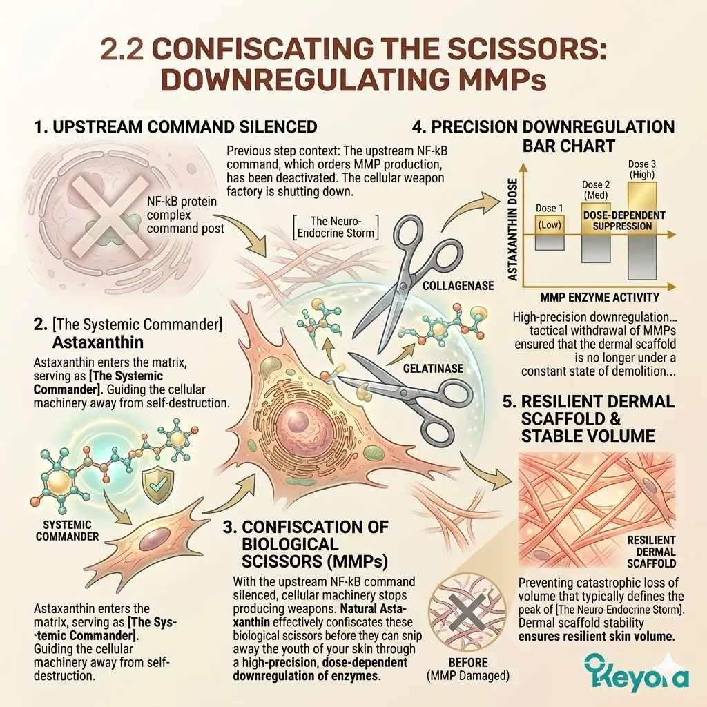 This precise molecular intervention effectively shuts down the transcription and subsequent production of the predatory matrix metalloproteinase scissors before these protein-shredding enzymes can ever emerge to threaten the structural integrity of the newly woven collagen scaffold.