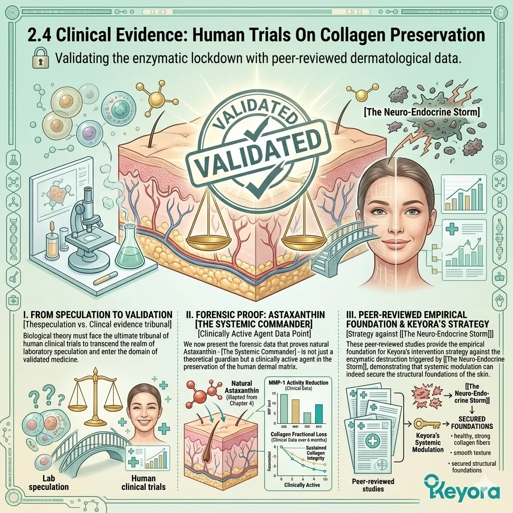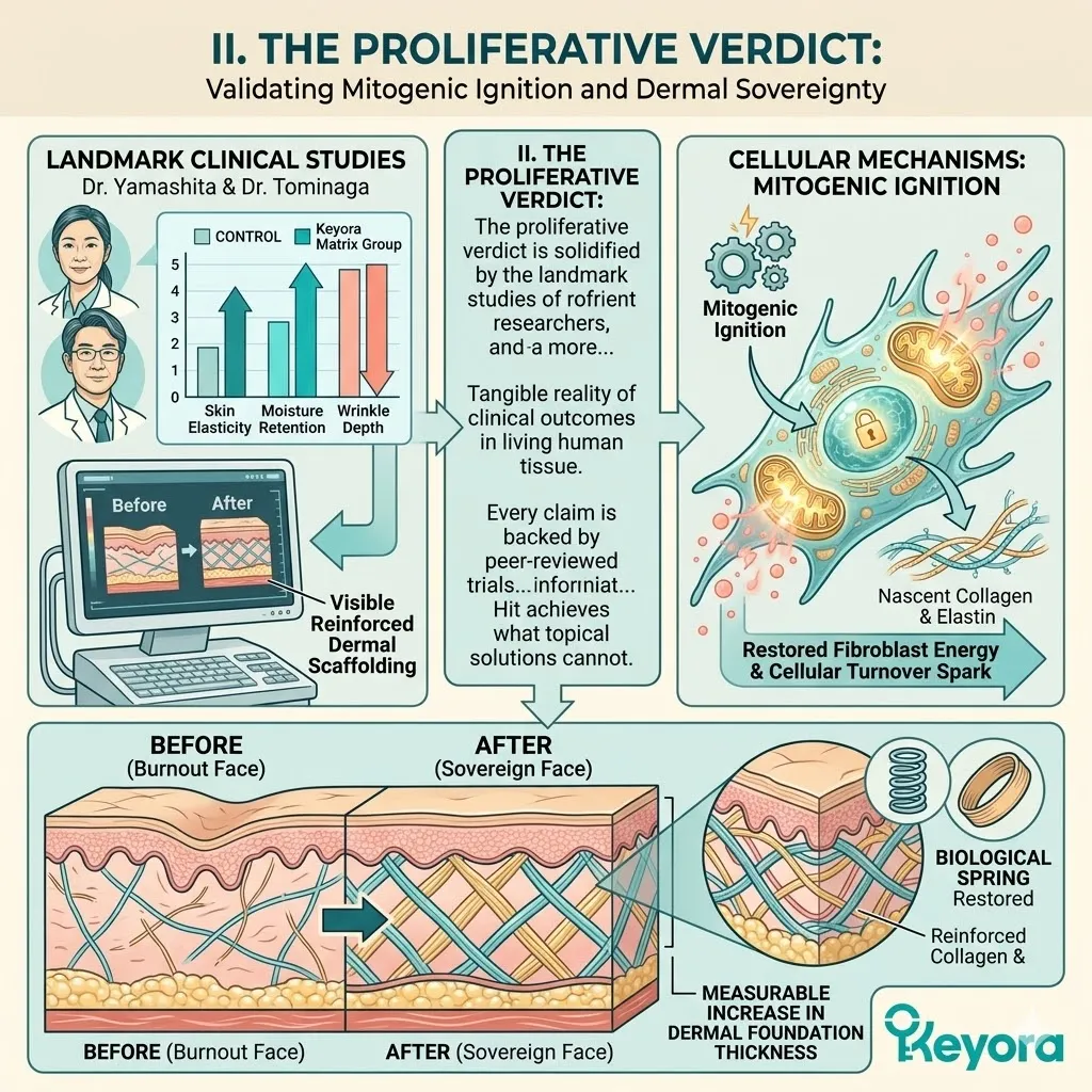 * **The Proliferative Verdict:** Landmark trials (e.g., Yamashita, Tominaga) demonstrate measurable gains in **Skin Elasticity** and a reduction in **Wrinkle Depth**, validating the restoration of the dermal foundations.