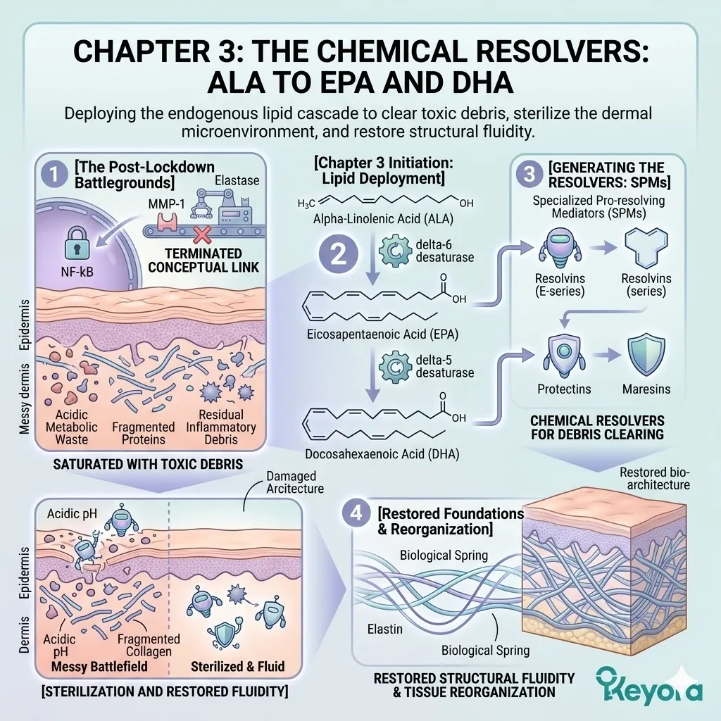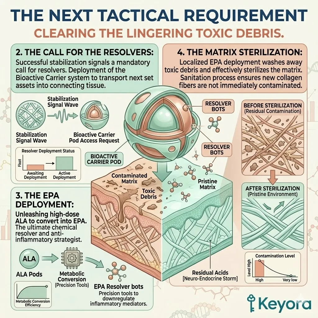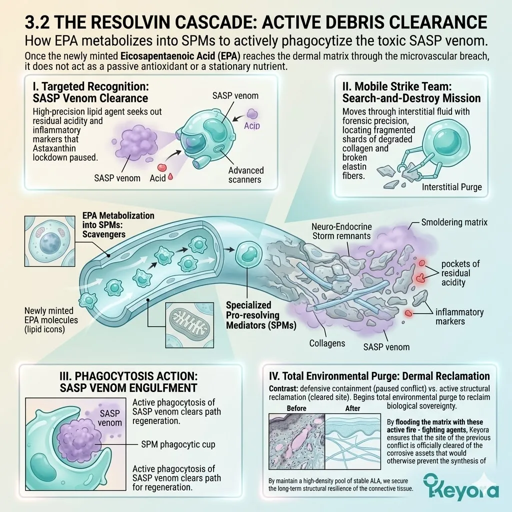 Our strategic defense further dictates that the Omega-3, Omega-6, and Omega-9 bioactive carrier must flood the dermal matrix with a surge of specialized pro-resolving mediators known as Resolvins to purify the internal cellular environment.