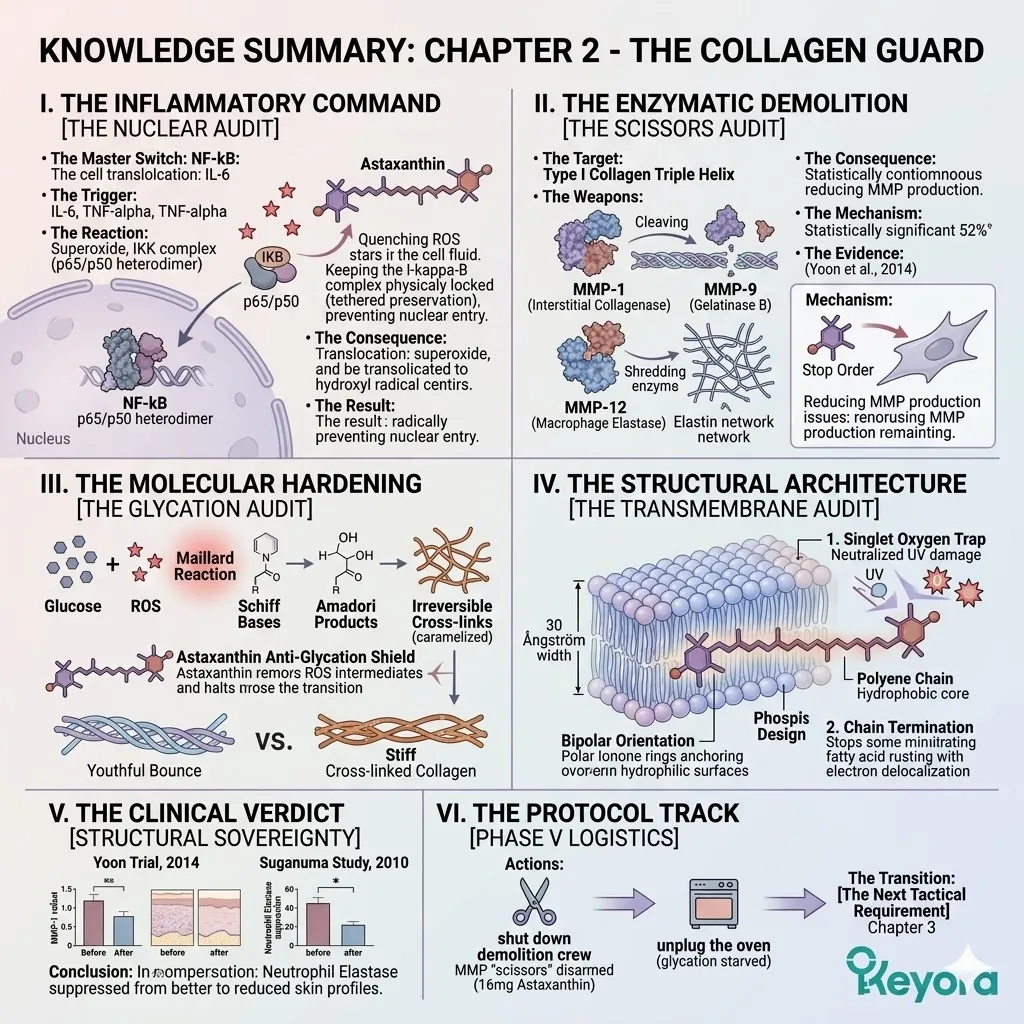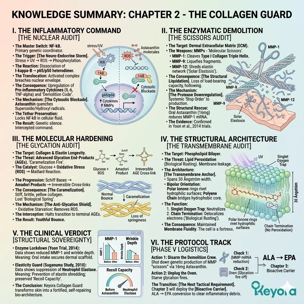 Our tactical objective necessitates the deployment of an absolute biological lockdown on the molecular scissors of the matrix metalloproteinase family and the slow-burning chemical fires of advanced glycation end-products that liquidate the dermal scaffold.