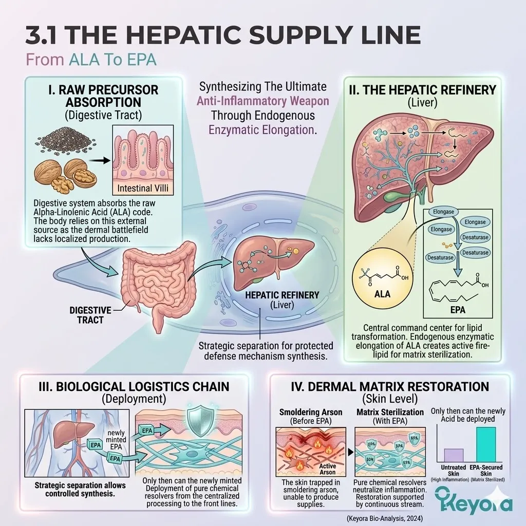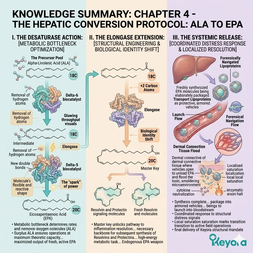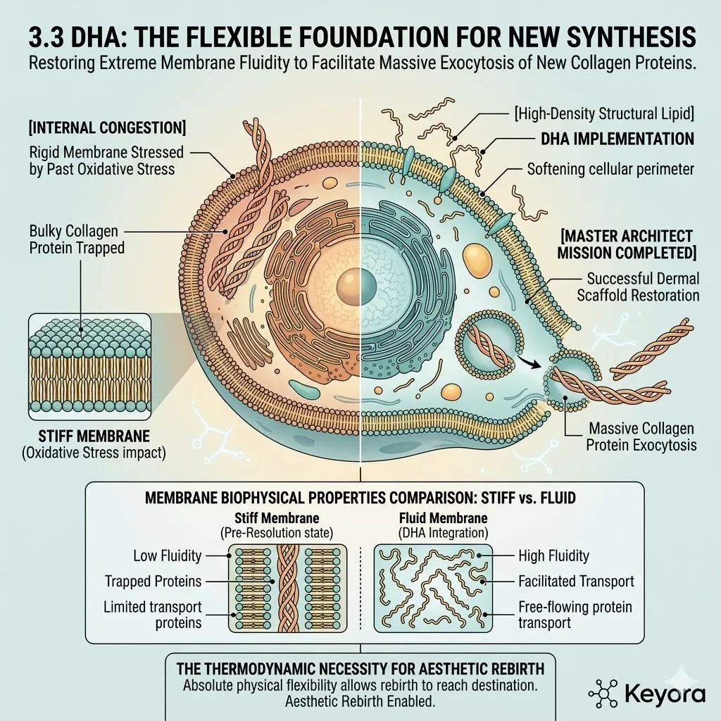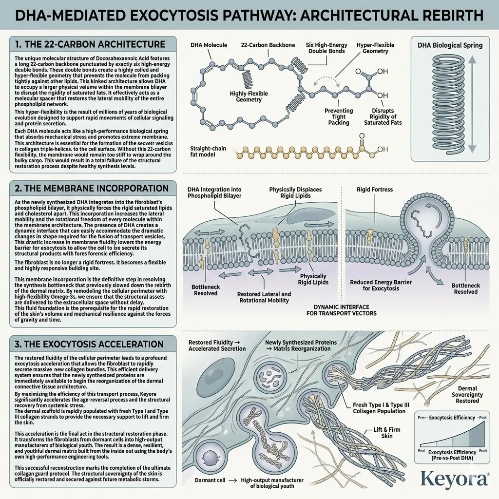 * **The Seven-Part Lipidomic Synergy:** The Keyora Matrix integrates **Astaxanthin, ALA, EPA, DHA, LA, OA, and DPA**; the removal of even one asset causes a catastrophic collapse of the anti-degradation fortress.