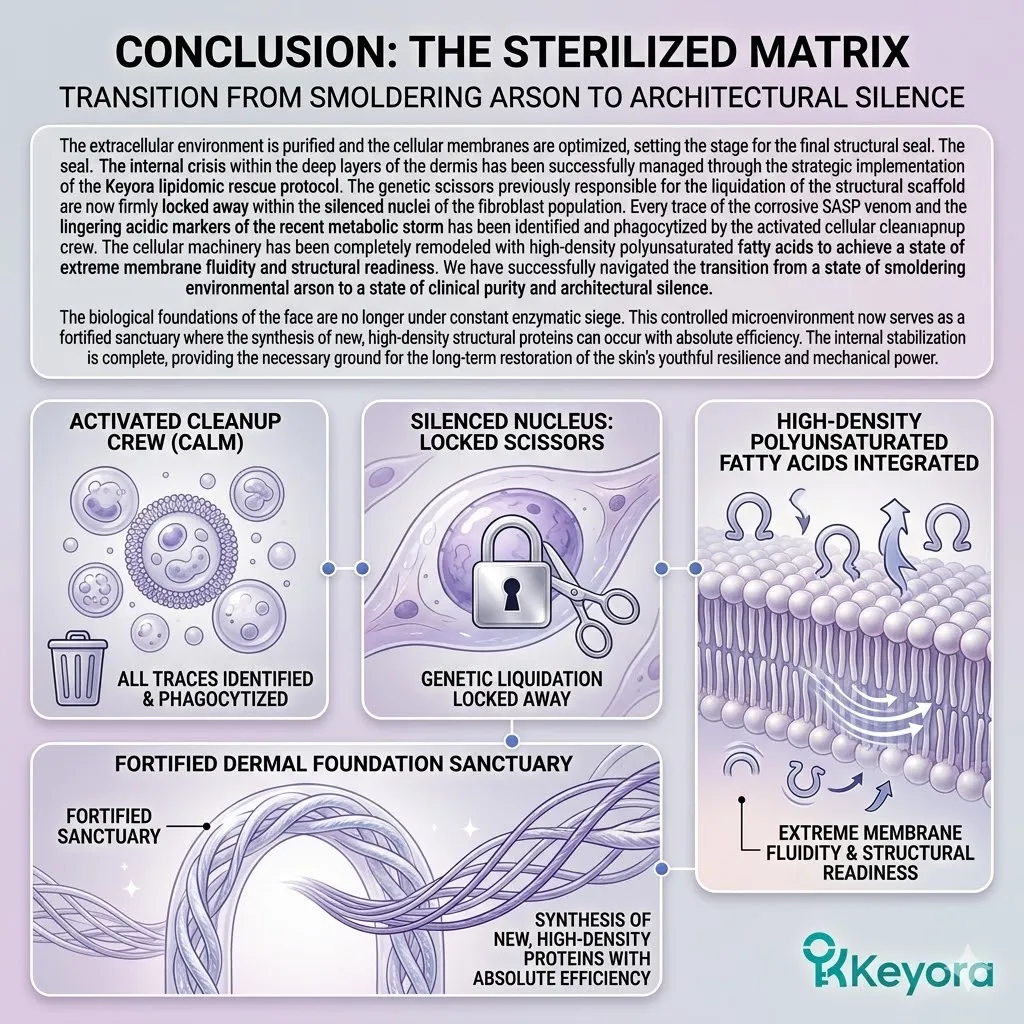 This shift in strategic orientation ensures that every energized fibroblast works in a protected sanctuary where its structural output remains secure from enzymatic theft and the corrosive forces of chronic, unmanaged internal biological entropy.