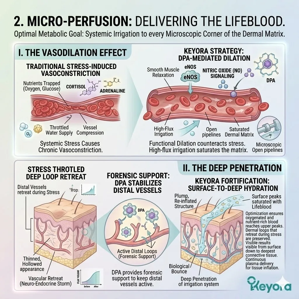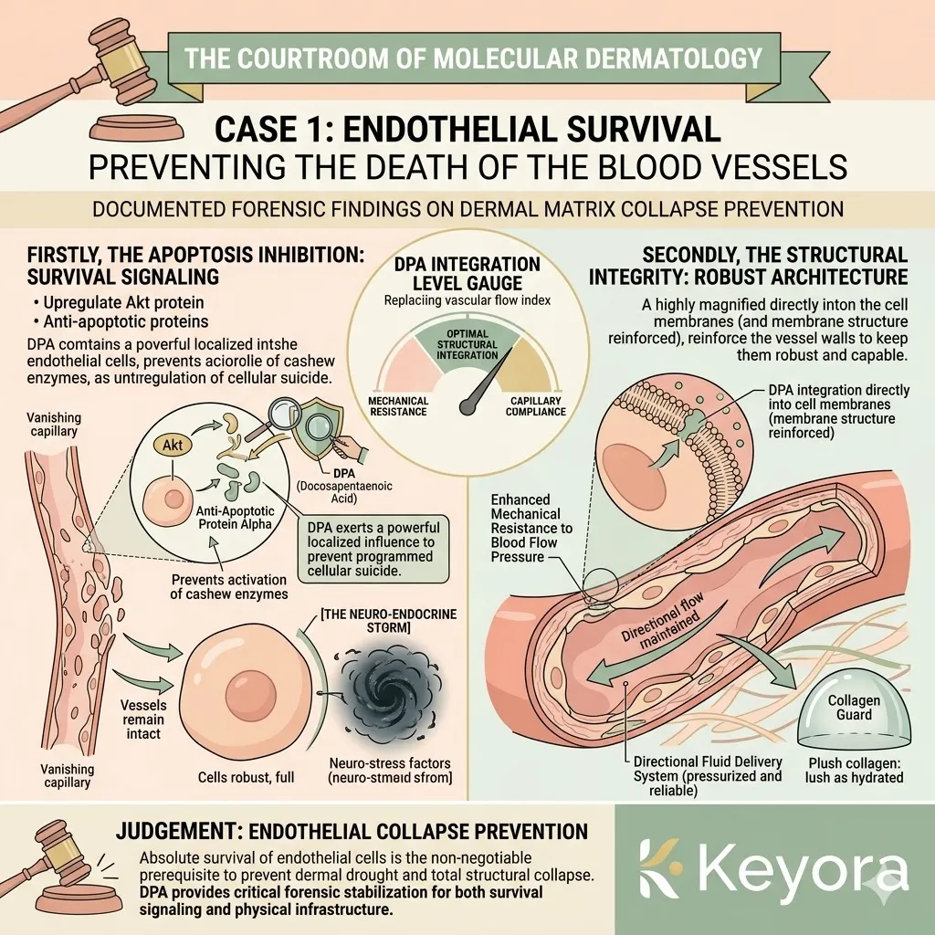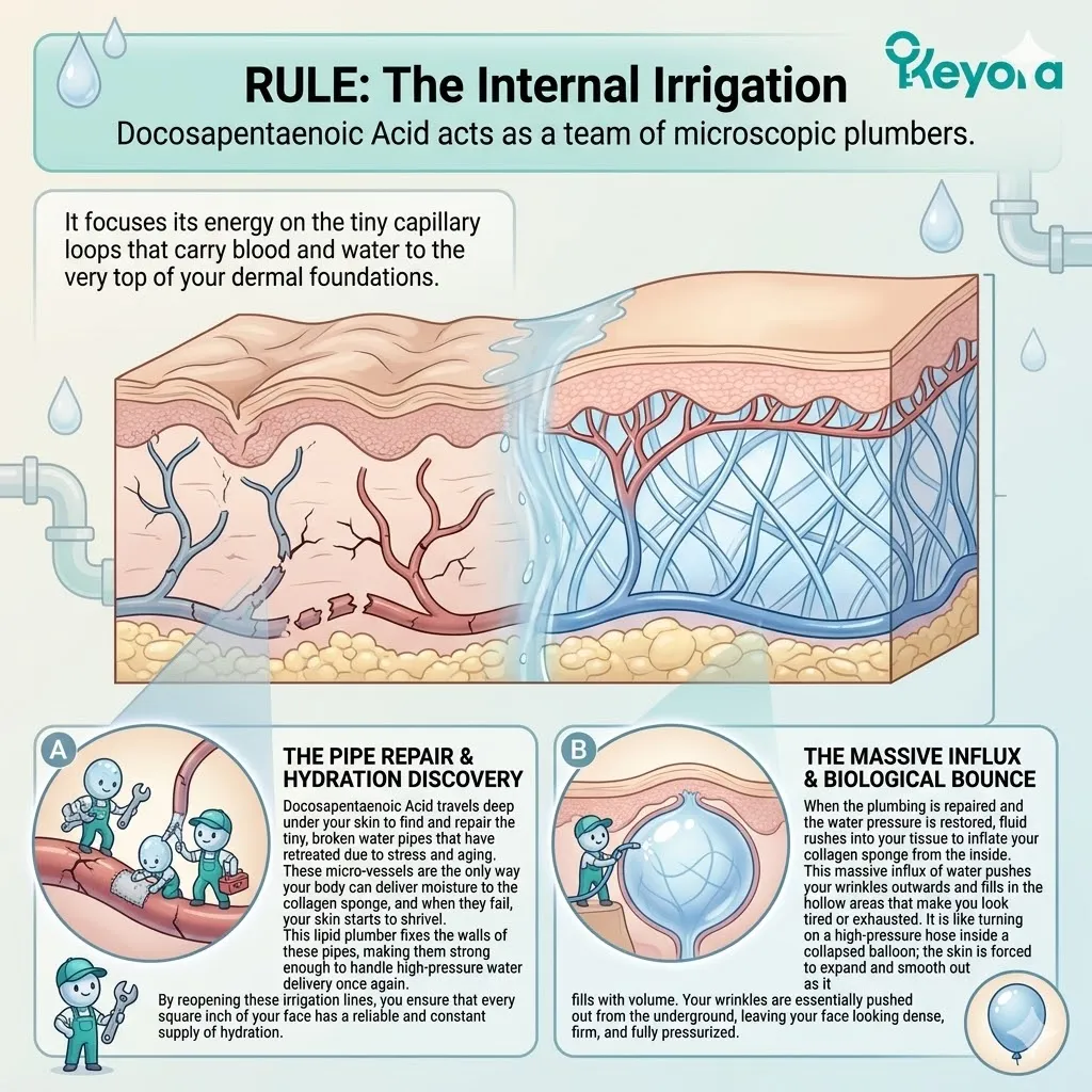 * **The Proliferative Spark (AA + DPA):** Arachidonic Acid (AA) serves as the **Mitogenic Ignition** to accelerate basal stem cell division, while DPA acts as the **Vascular Engineer** to rebuild the capillary plumbing for nutrient delivery.