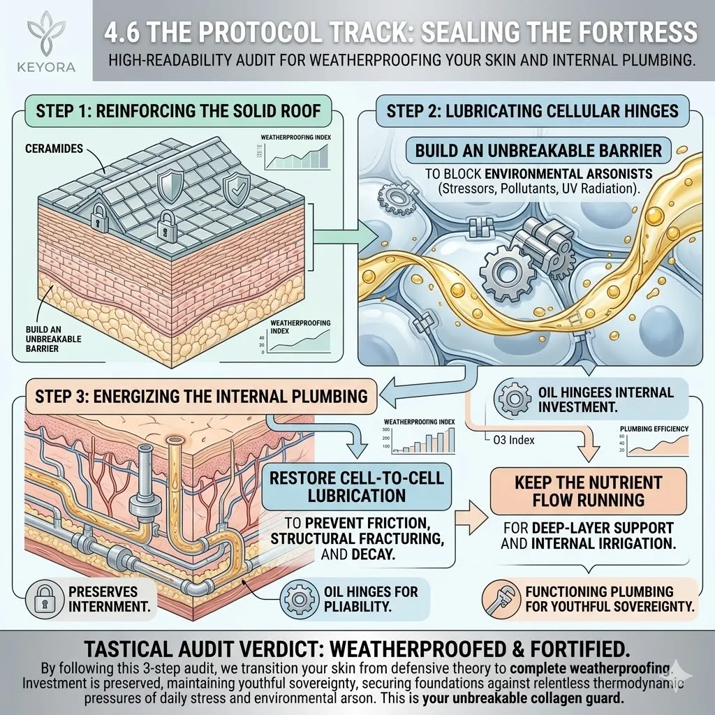 This is the final step in weatherproofing your biological fortress against the dry and corrosive outside world. By rebuilding the hydro-lipid dam, we ensure that your internal victories are reflected on a surface that is radiant and resilient. Prepare for the final seal of the sovereign architect.